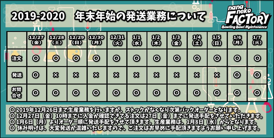 年末年始の下記期間中は、誠に勝手ではございますが 生産と発送業務をお休みさせて頂いております 2019年12/27(金)10時以降~2020年1/5(日)のご注文の商品は