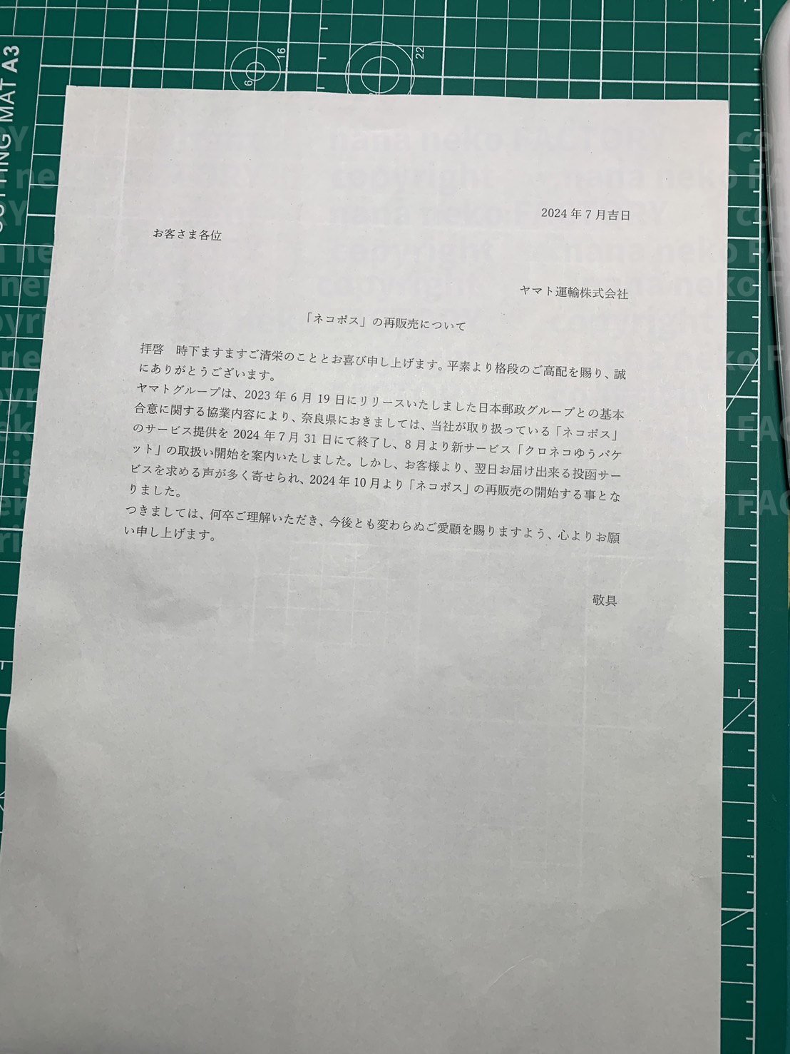 〆 ヤマト運輸 ネコポス復活 |