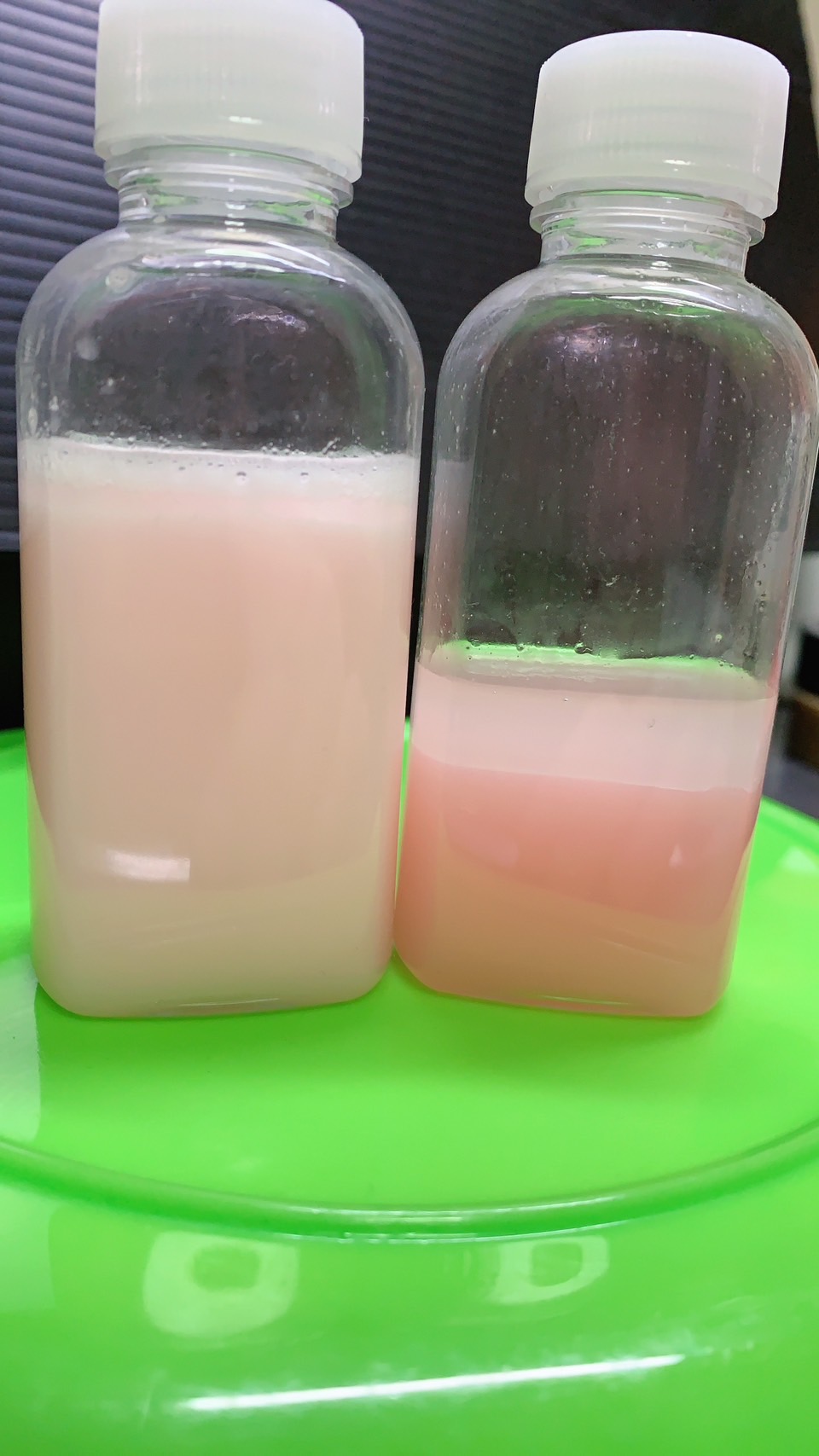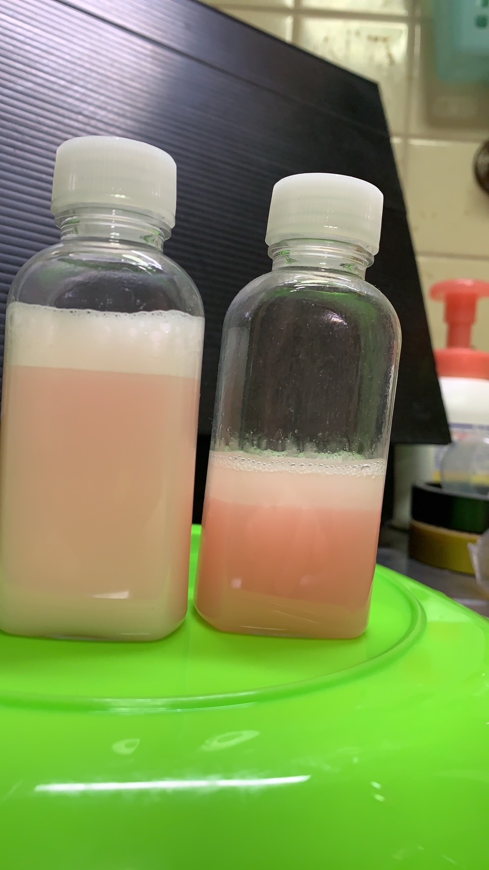 お問い合わせがあり お電話した際に出てきた話しなんですが 毎回、激泡泡アルコール系クリーナー(ブルー)を購入頂いてまして 使ってるうちに 少しずつ色が抜けてると言うんです 冷暗所保管なのに、1年も経てば、ほぼ透明になるとの事 Yahooショッピングのレビューの所でも クリアグリーンが1月でイエローになったともあります… 色が分解されてるのかな? う~ん… とりあえず レッド イエロー ブルーの 激泡泡アルコール系クリーナー作って3ヶ月くらい置いておこうかな… 〆 |