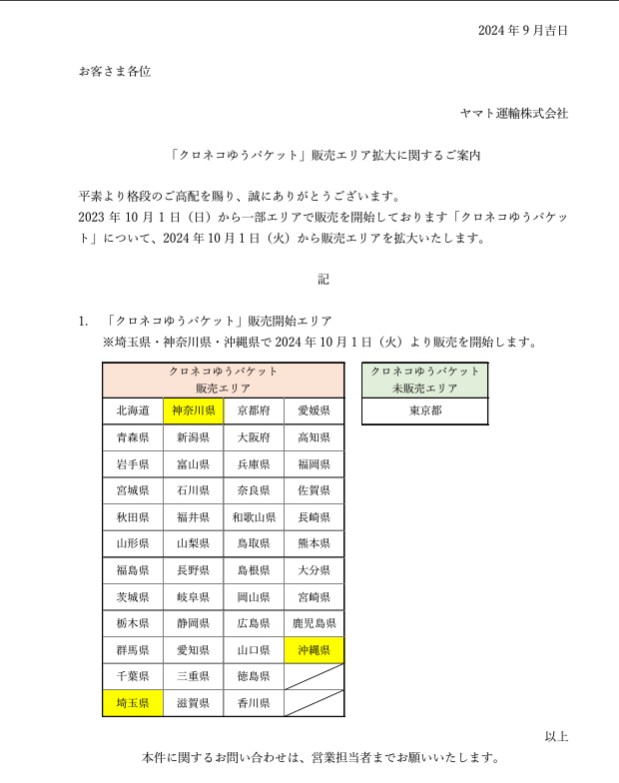 7月にもお知らせした通り10月1日より期間限定でネコポスが復活します