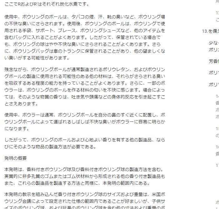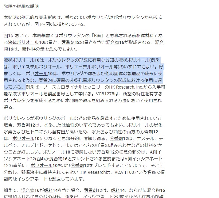ボウリングボールのオイル抜きはするな!という動画を お作りになっておりまして 僕としては、オイル抜きをおススメしてますので なんでダメなんだろう?と思う訳です 簡単に言うと 劣化して カバーストックが割れたり、変色したりなどなど デメリットもあるから、オイル抜きはするな!ということですわ 動画内容自体は、良くお調べになられてるようで わりと、マニアックな内容の事も言ってました その中で、レーンコンディショナー(レンコン)の成分と B液は エステル系? エーテル系? という 2つの 不明な個所があったんです 少しだけ補足 リアクティブウレタンボールの製造は 簡単に説明すると A液(イソシアネート成分) B液(ポリオール成分) その他の物(可塑剤、パールなどの添加剤、その他)を 混ぜ合わせ コアの入った金型に流します 混合液は、3分程度でドロドロになり 10分程度でカチカチに硬化し それを、金型から取り出して 既定のサイズまで削るわけですね ちなみに熱硬化性ウレタン樹脂となります これは、簡単に言うと チョコなのか? クッキーなのか?です 完成したものに、熱を加えると 溶けるのが、熱可塑性ウレタン樹脂 溶けないのが、熱硬化性ウレタン樹脂です 話しを戻します その2つの不明な個所 レンコンの成分 これは、ケーゲルのHPに行けば データシートが手に入ります しかも、日本語のがあるんですね こういうのがどこどこに あるよ~ってコメントしたんです YouTubeの仕様でURL書くと スパム扱いになって、コメントが出ない… ま。。仕様だからね。。。 ここは。回避策でなんとか ありかをお伝え出来ました 2つ目の エステル系? エーテル系? これね、動画を観てる人の 99%は 興味ないし そんなのどっちでもいいって~思ってると思う エステル系は、水に弱い(加水分解する) エーテル系は、エステル系よりは強い でもね どっちでも 何日も水に使ってるとかじゃない限り 全然問題ないレベルかと思う で。。 山〇さんの可塑剤の特許文献やアメリカの 関連文献などに、そこそこ詳しく書いてるんで お調べになったら?ってお伝えしたんですが 答えを知りたいと。。熱望したので 僕の調べてきたこと エステル系 エーテル系 ブレンドしたもの この3種類を使いますと書いてるとお伝えしました 一応、間違えてると申し訳ないのと 質問されると困るので予備知識の為に ストーム、エボナイト、ブランズウイックの 1990年代~2015年のうちの 8個を見てきたんです どれも同じような内容でした ま・・特許なんで、広く使えるような文章で作ってるので このボールは、これ あのボールは、あれ みたいな 実際、これは何%入れますとかは 企業秘密な部分なんです 下記は、ストームの香りの・・・特許文献から 1番面白そうなのが ストームの香りのボウリングボールと方法という特許文献です 翻訳した内容ですが 面白そうっておもった所だけ抜粋 ----引用---- 使用中、ボウリングのボールは、タバコの煙、汗、靴の臭いなど、 ボウリング場の不快な臭いにさらされます。 使用後、ボウリングのボールは、ボウリングで使用される手袋、 サポート、ブレース、ボウリングシューズなど、 他のアイテムを含むバッグに入れることがよくあります。 したがって、保管されている場合でも、 ボウリングの球はやや不快な臭いにさらされることがよくあります。 さらに、ボウリングバッグは車のトランクに保管されることがあり、 他の望ましくない臭いがする可能性があります。 残念ながら、ボウリングボールが通常製造されるポリウレタン、 およびボウリングボールの製造に使用される可能性のある 他の材料は、それらがさらされる臭いを吸収するある程度の 能力を持っていることがよくあります。 さらに、一部のボウラーは、ボウリングのボールを作る 材料の匂いを不快に感じます。 場合によっては、そのような物質の香りは、 吐き気や頭痛などの身体的反応を引き起こすことさえあります。 使用中、ボウラーは通常、ボウリングボールを自分の鼻の すぐ近くに配置し、ボウリングボールによって 運ばれるしばしば不快な臭いがボウラーに容易に明らかになります。 したがって、ボウリングのボールおよび心地よい香りを 有する他の製造品、ならびにそのような物品の製造方法が必要である。 ---ここまで---- 引用元 とのことです STORM EBONITE Brunswick どこのも色々面白かったな~ 土日のまるまる2日間 アメリカ特許巡りしてて すこし疲れたな・・ カバーストック系 また今度ツアーに行こう♪ 予期せぬことから 調査に行って また 新しい知識を手に入れて 少し賢くなったかも 嬉しいな~ 今日はこのくらいで・・・ あと画像作りました なんだか ハンコみたいで 可愛い♪ こっそり書いておくけど サンブリの公式チャンネルで HK22 ダイナミックコア の セミナー動画見つけました 多分、関係者のみの 期間限定 限定公開だから しばらくしたら 見れなくなるかもです 見に行ってね~ ここからいけるよ 〆 |