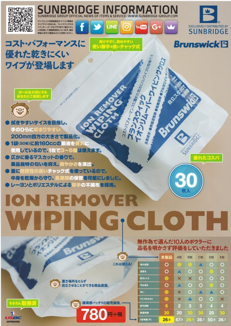 ブランズウィック コストパフォーマンスに優れた乾きにくいワイプが登場します 〇拭きやすいサイズを目指し、手のひらに収まりやすい SUNBRIDGE(サンブリッジ) |