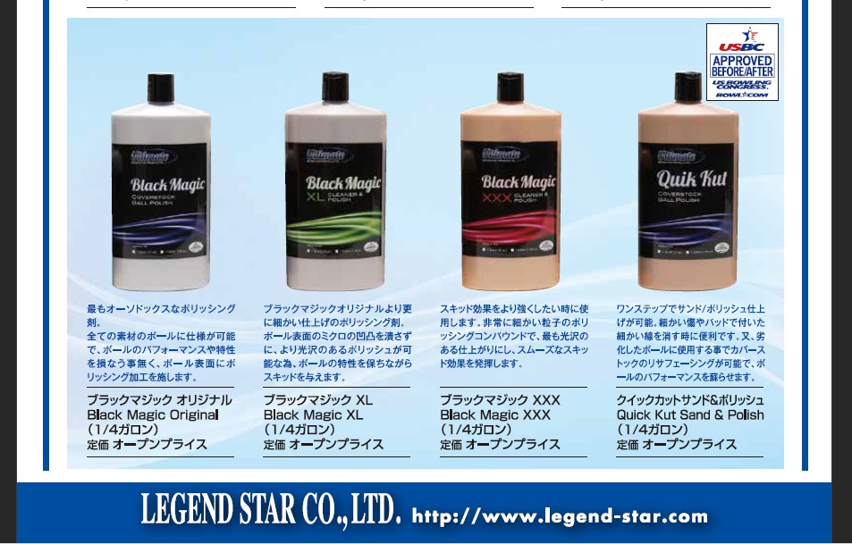 アルティメイト社の新しい クリーナーとコンパウンド取り扱い開始です♪ アルティメット社 公式HP http://www.ultimatebowling.com/ Ultimate Ultra Foam http://www.ultimatebowling.com/product/ultra-foam/ Ultimate Ultra Clean Gel http://www.ultimatebowling.com/product/ultra-clean-gel-ball-cleaner/ Ultimate Black Magic Rejuvenator http://www.ultimatebowling.com/product/black-magic-rejuvenator-cover-stock-cleaner/ Ultimate Black Magic Original http://www.ultimatebowling.com/product/black-magic-ball-polish/ Ultimate Black Magic XL http://www.ultimatebowling.com/product/black-magic-xl-ball-polish/ Ultimate Black Magic XXX http://www.ultimatebowling.com/product/black-magic-xxx-ball-polish/ Ultimate Quik Kut Sand & Polish http://www.ultimatebowling.com/product/quik-kut-polish/ 〆〆 |