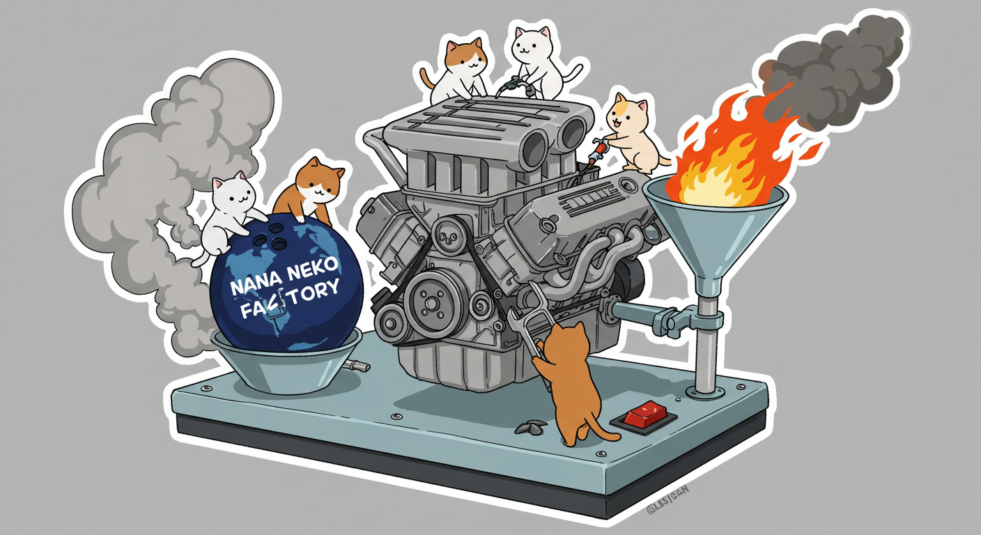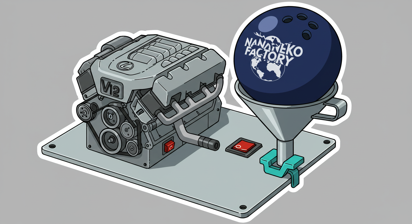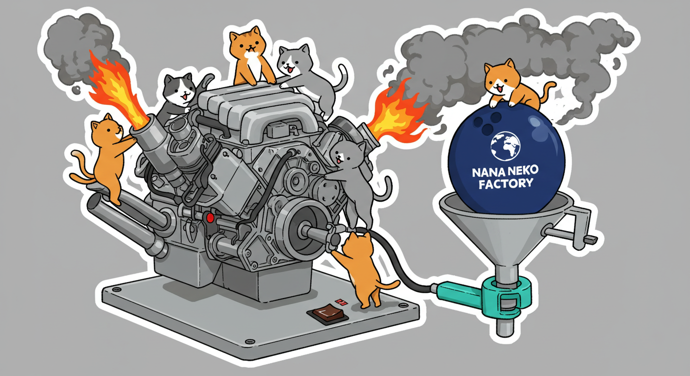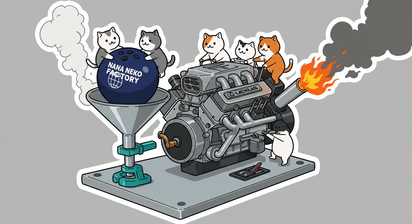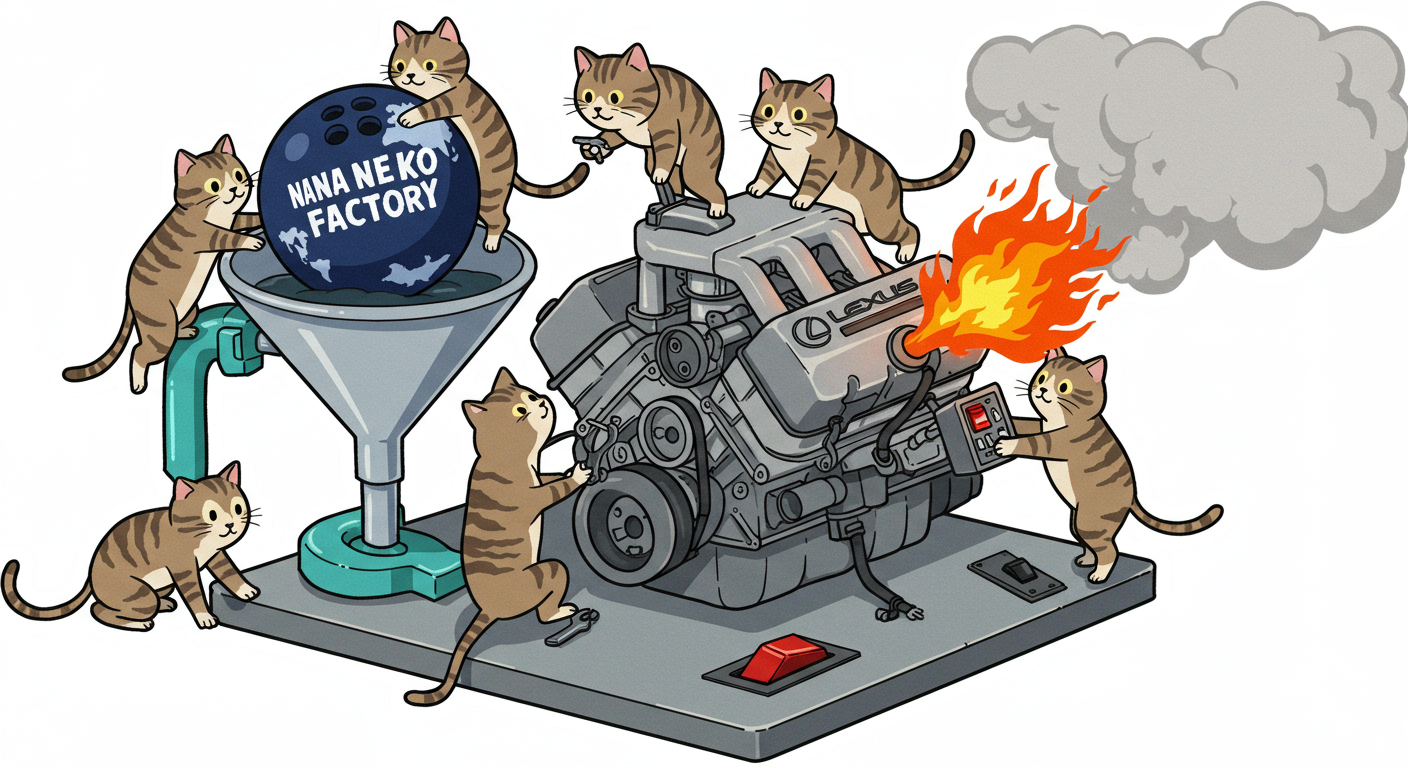 現実逃避も兼ねて Googleの何かのAIの画像生成で あったらいいな~ってのって思うの作ってみました Whisk - labs.google/fx https://labs.google/fx/ja/tools/whisk 使い方などは下記のギガジンさんを見てください https://gigazine.net/news/20250213-google-whisk/ バンプーさまがボール研磨機2号機の導入を検討してるようで 刃物研ぎ機で製作しようかな~ でも弱そうだしな~ってことで パワフルな何か作れないかな~と思い 画像生成してみました ベースに使うのは下記の『ABSのスピナー』と『アメリカのスピナー』です よし作るぞ AIになんかかんや書いてお願いした 時々なんか違うのが出てくる カップの上にボールを乗せてほしいので 細かくAIさんに、アキュじゃないななねこだ、こーして、あーして、これはこう あーじゃない、こーだよと聞いてもらうこと1時間 なんでカプセルに入れる??? これは今話題のSTORMパワーエッジをカプセル化したもの なんとか良い感じのが出来た これをベースに AIにさらなるお願いを言いまくる 良いんだけど なんか弱そう もっとエンジン並みにパワフルにしてほしい 可能だったらターボも付けてくれ!! たのむ~~~ 気筒数船してV12にしてくれ~~~って言ったら 2気筒~~ 12って書いてるだけやんけ。。。おい!! わりと良い感じなんだけど もっと気筒数増やしてパワフルにしてほしい V12気筒エンジンにしてくれ~~~たのむ~~~ わりと良い感じなんだけど もっとパワフルにしてほしい V12気筒のレクサスエンジン たのむ~~~ すごく良い感じに伝わったようで まじレクサスのエンブレムが付いてる でもね まだ足りなんだよね パワフルさ なんていうかな~ 燃えてる感じ モクモクな感じ いいねいいね でも・・・軸大丈夫か?? いいねいいね 軸はしっかりしてるけどボール回るのか?? さっきより良いよ ボール燃えないか?? ボール燃えてるよね? 火が近いって 煙も追加して~って頼んだら・・・ついに炎上 ボールは燃やすなとお願いしたら 燃えてはないけど煙でてるよね・・・ で 軸大丈夫か?? 軸を太くしてとお願いした 何か足りない ネコを追加しよう ナナネコだからね って エンジン浮いてるし どこにマフラー付けてるねん そこ指穴ですけど・・・・ 7匹お願いします 良い感じだけど ボール燃えてるって だから燃やすなって 1匹増えてるし 今度は7匹 Cって何?? 軸大丈夫?? 軸替えたら良い感じだよ ねこ増えてるって 炎上中 6匹?? 良いぞ良いぞ 7匹だし ボールも燃えてない またねこ増えてる ボールもモクモクしてる あかんて ボール避難?? 良い感じだよ いいねいいね いいよいいよ マシになってきた ボール燃えてって 4匹どこ行った?? 脱走?? あと2匹どこや?? あと1匹 穴からモクモクやって また脱走か? よし帰ってきた 良いけど軸が浮いてるよ よし 軸固定完了 エンジンしょぼくなってない?? 良いよ 良いよ 良い感じ~ エンジンをモーターにかえてもらった 良い感じだよ みんなで研磨って感じだね 8匹なってるって あ~ 楽しかった おしまい 〆ボール研磨機 |