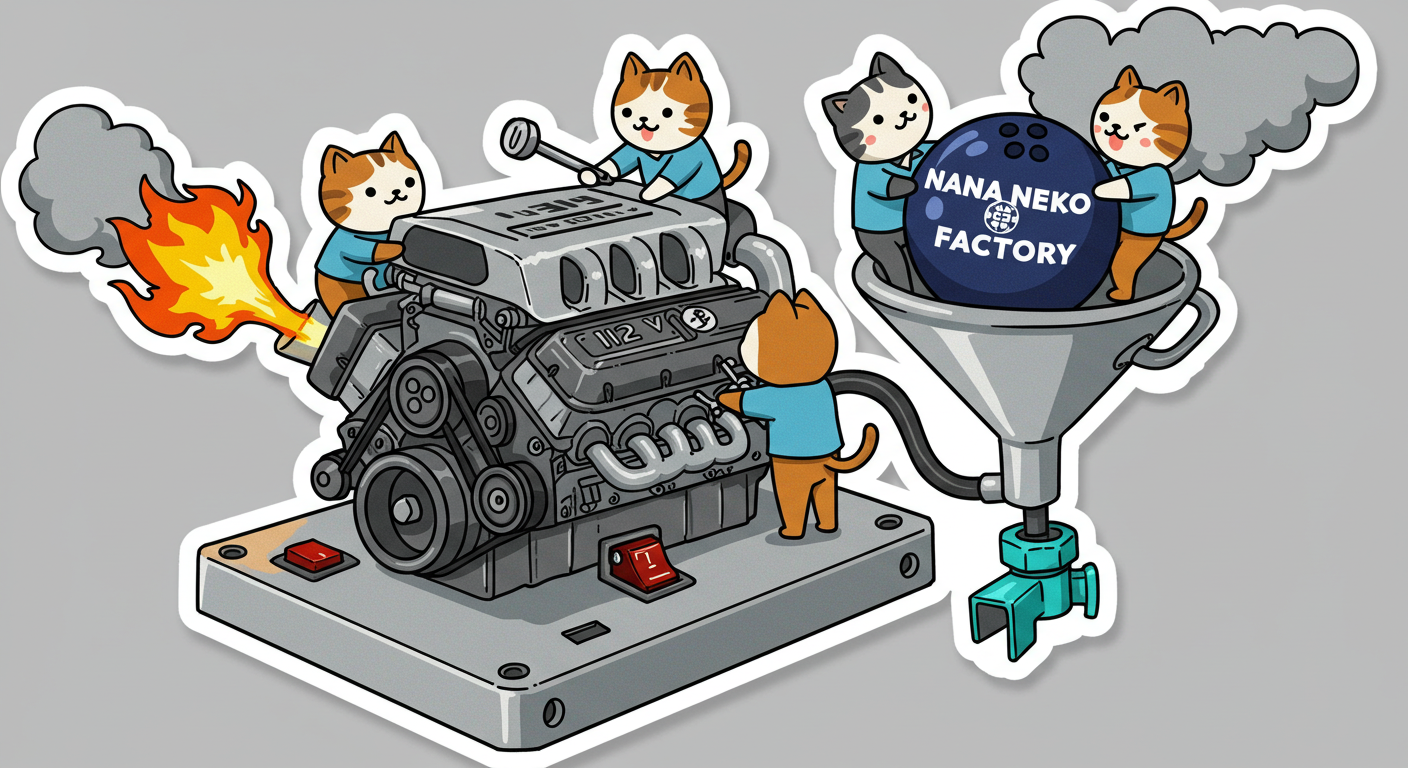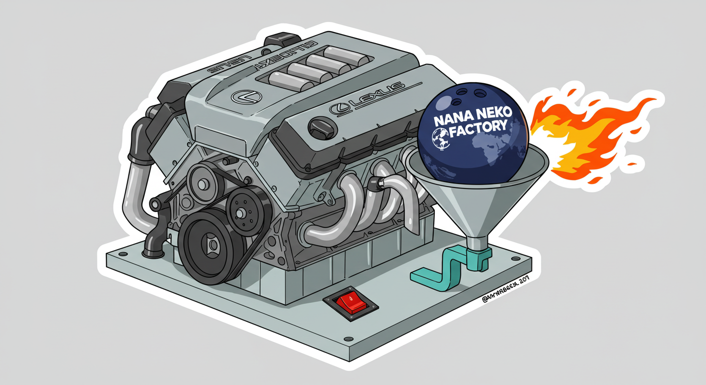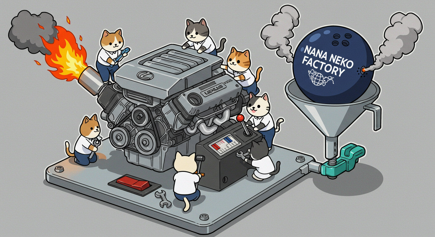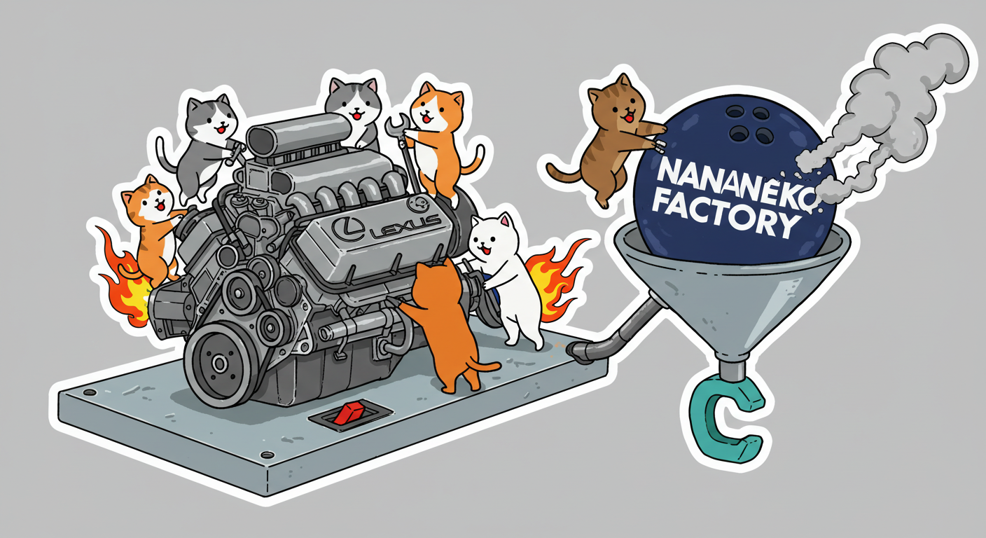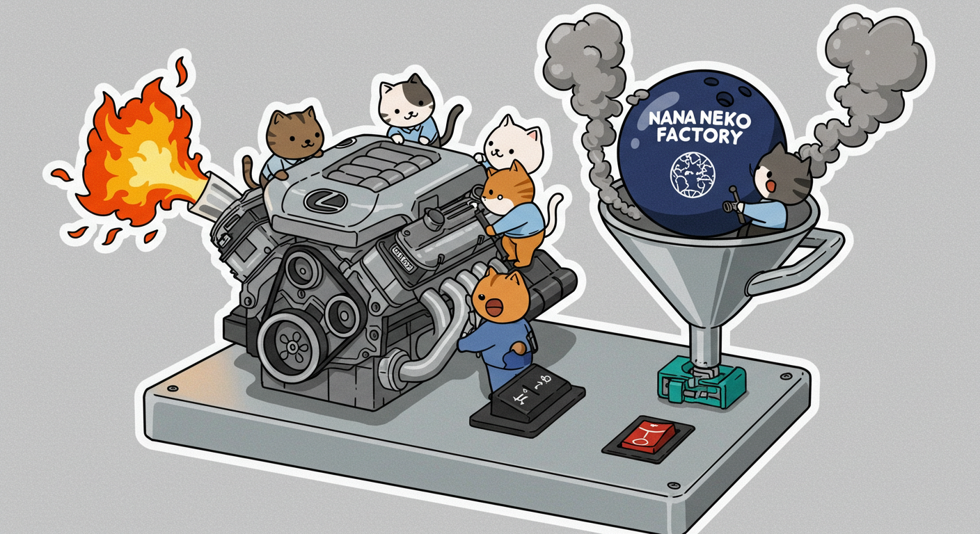 現実逃避も兼ねて Googleの何かのAIの画像生成で あったらいいな~ってのって思うの作ってみました Whisk - labs.google/fx https://labs.google/fx/ja/tools/whisk 使い方などは下記のギガジンさんを見てください https://gigazine.net/news/20250213-google-whisk/ バンプーさまがボール研磨機2号機の導入を検討してるようで 刃物研ぎ機で製作しようかな~ でも弱そうだしな~ってことで パワフルな何か作れないかな~と思い 画像生成してみました ベースに使うのは下記の『ABSのスピナー』と『アメリカのスピナー』です よし作るぞ AIになんかかんや書いてお願いした 時々なんか違うのが出てくる カップの上にボールを乗せてほしいので 細かくAIさんに、アキュじゃないななねこだ、こーして、あーして、これはこう あーじゃない、こーだよと聞いてもらうこと1時間 なんでカプセルに入れる??? これは今話題のSTORMパワーエッジをカプセル化したもの なんとか良い感じのが出来た これをベースに AIにさらなるお願いを言いまくる 良いんだけど なんか弱そう もっとエンジン並みにパワフルにしてほしい 可能だったらターボも付けてくれ!! たのむ~~~ 気筒数船してV12にしてくれ~~~って言ったら 2気筒~~ 12って書いてるだけやんけ。。。おい!! わりと良い感じなんだけど もっと気筒数増やしてパワフルにしてほしい V12気筒エンジンにしてくれ~~~たのむ~~~ わりと良い感じなんだけど もっとパワフルにしてほしい V12気筒のレクサスエンジン たのむ~~~ すごく良い感じに伝わったようで まじレクサスのエンブレムが付いてる でもね まだ足りなんだよね パワフルさ なんていうかな~ 燃えてる感じ モクモクな感じ いいねいいね でも・・・軸大丈夫か?? いいねいいね 軸はしっかりしてるけどボール回るのか?? さっきより良いよ ボール燃えないか?? ボール燃えてるよね? 火が近いって 煙も追加して~って頼んだら・・・ついに炎上 ボールは燃やすなとお願いしたら 燃えてはないけど煙でてるよね・・・ で 軸大丈夫か?? 軸を太くしてとお願いした 何か足りない ネコを追加しよう ナナネコだからね って エンジン浮いてるし どこにマフラー付けてるねん そこ指穴ですけど・・・・ 7匹お願いします 良い感じだけど ボール燃えてるって だから燃やすなって 1匹増えてるし 今度は7匹 Cって何?? 軸大丈夫?? 軸替えたら良い感じだよ ねこ増えてるって 炎上中 6匹?? 良いぞ良いぞ 7匹だし ボールも燃えてない またねこ増えてる ボールもモクモクしてる あかんて ボール避難?? 良い感じだよ いいねいいね いいよいいよ マシになってきた ボール燃えてって 4匹どこ行った?? 脱走?? あと2匹どこや?? あと1匹 穴からモクモクやって また脱走か? よし帰ってきた 良いけど軸が浮いてるよ よし 軸固定完了 エンジンしょぼくなってない?? 良いよ 良いよ 良い感じ~ エンジンをモーターにかえてもらった 良い感じだよ みんなで研磨って感じだね 8匹なってるって あ~ 楽しかった おしまい 〆ボール研磨機 |