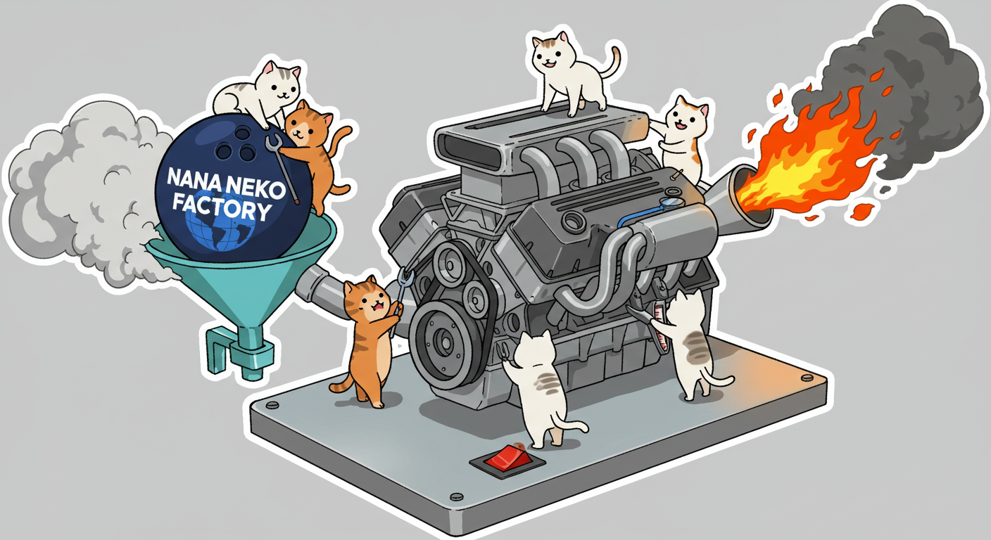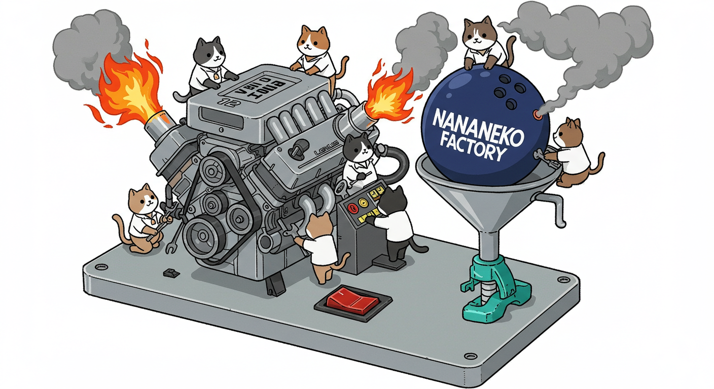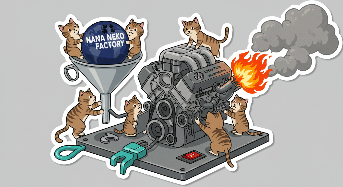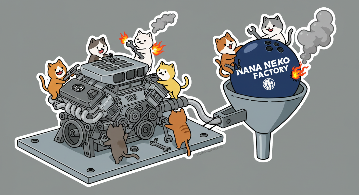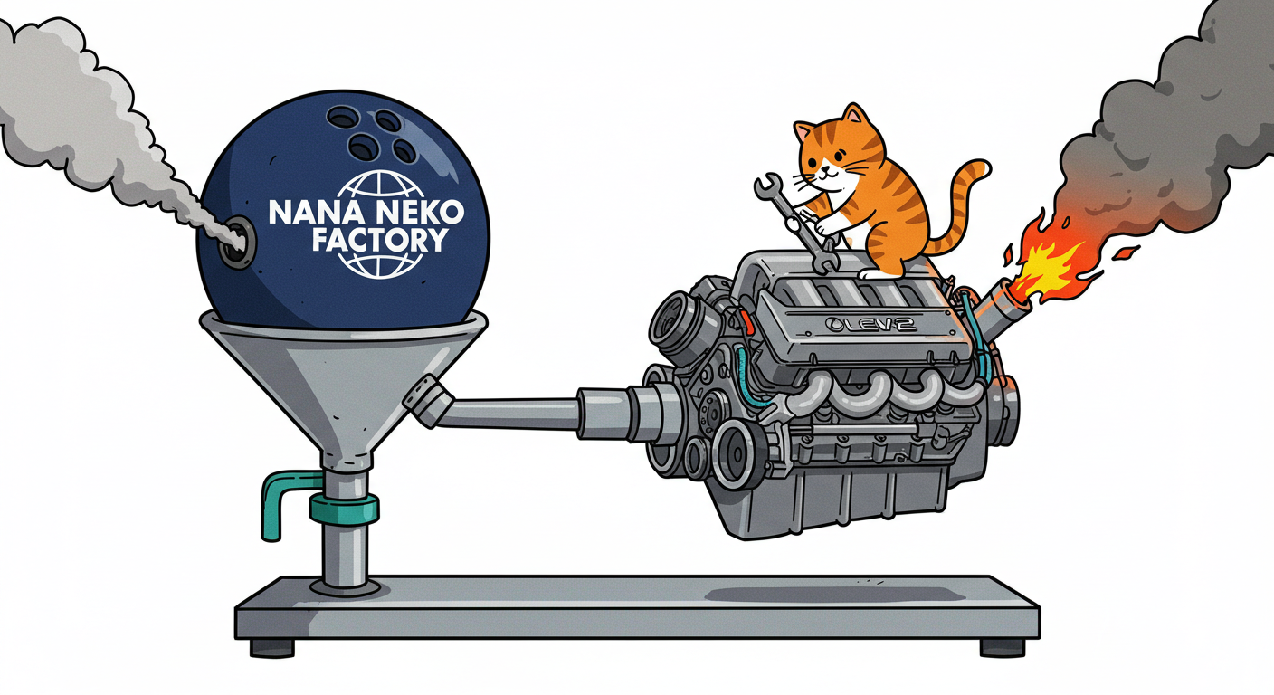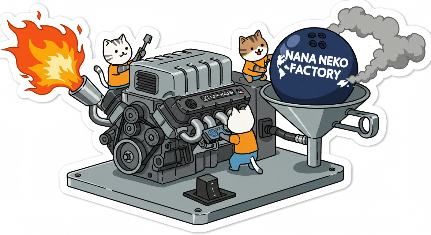 現実逃避も兼ねて Googleの何かのAIの画像生成で あったらいいな~ってのって思うの作ってみました Whisk - labs.google/fx https://labs.google/fx/ja/tools/whisk 使い方などは下記のギガジンさんを見てください https://gigazine.net/news/20250213-google-whisk/ バンプーさまがボール研磨機2号機の導入を検討してるようで 刃物研ぎ機で製作しようかな~ でも弱そうだしな~ってことで パワフルな何か作れないかな~と思い 画像生成してみました ベースに使うのは下記の『ABSのスピナー』と『アメリカのスピナー』です よし作るぞ AIになんかかんや書いてお願いした 時々なんか違うのが出てくる カップの上にボールを乗せてほしいので 細かくAIさんに、アキュじゃないななねこだ、こーして、あーして、これはこう あーじゃない、こーだよと聞いてもらうこと1時間 なんでカプセルに入れる??? これは今話題のSTORMパワーエッジをカプセル化したもの なんとか良い感じのが出来た これをベースに AIにさらなるお願いを言いまくる 良いんだけど なんか弱そう もっとエンジン並みにパワフルにしてほしい 可能だったらターボも付けてくれ!! たのむ~~~ 気筒数船してV12にしてくれ~~~って言ったら 2気筒~~ 12って書いてるだけやんけ。。。おい!! わりと良い感じなんだけど もっと気筒数増やしてパワフルにしてほしい V12気筒エンジンにしてくれ~~~たのむ~~~ わりと良い感じなんだけど もっとパワフルにしてほしい V12気筒のレクサスエンジン たのむ~~~ すごく良い感じに伝わったようで まじレクサスのエンブレムが付いてる でもね まだ足りなんだよね パワフルさ なんていうかな~ 燃えてる感じ モクモクな感じ いいねいいね でも・・・軸大丈夫か?? いいねいいね 軸はしっかりしてるけどボール回るのか?? さっきより良いよ ボール燃えないか?? ボール燃えてるよね? 火が近いって 煙も追加して~って頼んだら・・・ついに炎上 ボールは燃やすなとお願いしたら 燃えてはないけど煙でてるよね・・・ で 軸大丈夫か?? 軸を太くしてとお願いした 何か足りない ネコを追加しよう ナナネコだからね って エンジン浮いてるし どこにマフラー付けてるねん そこ指穴ですけど・・・・ 7匹お願いします 良い感じだけど ボール燃えてるって だから燃やすなって 1匹増えてるし 今度は7匹 Cって何?? 軸大丈夫?? 軸替えたら良い感じだよ ねこ増えてるって 炎上中 6匹?? 良いぞ良いぞ 7匹だし ボールも燃えてない またねこ増えてる ボールもモクモクしてる あかんて ボール避難?? 良い感じだよ いいねいいね いいよいいよ マシになってきた ボール燃えてって 4匹どこ行った?? 脱走?? あと2匹どこや?? あと1匹 穴からモクモクやって また脱走か? よし帰ってきた 良いけど軸が浮いてるよ よし 軸固定完了 エンジンしょぼくなってない?? 良いよ 良いよ 良い感じ~ エンジンをモーターにかえてもらった 良い感じだよ みんなで研磨って感じだね 8匹なってるって あ~ 楽しかった おしまい 〆ボール研磨機 |