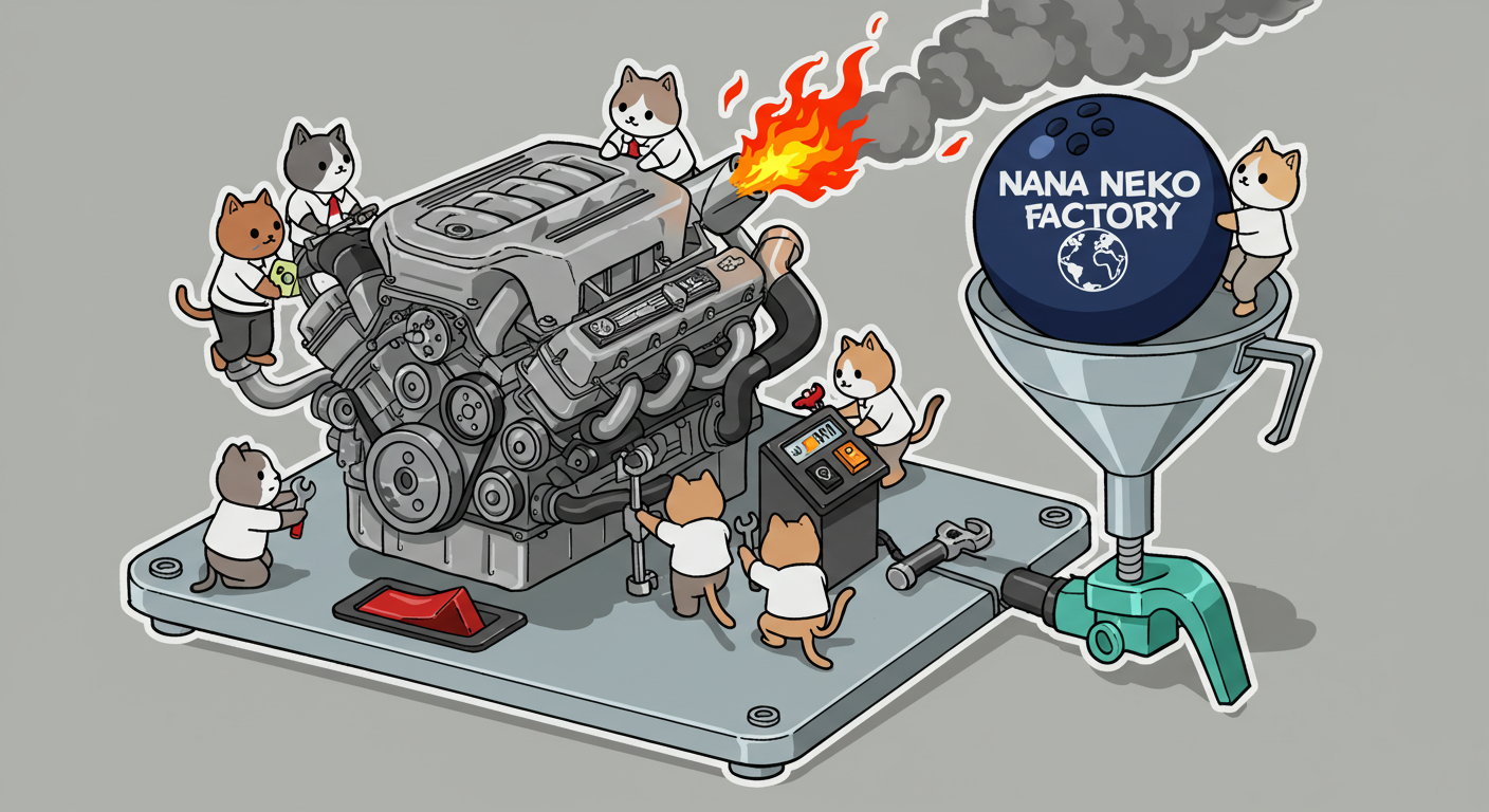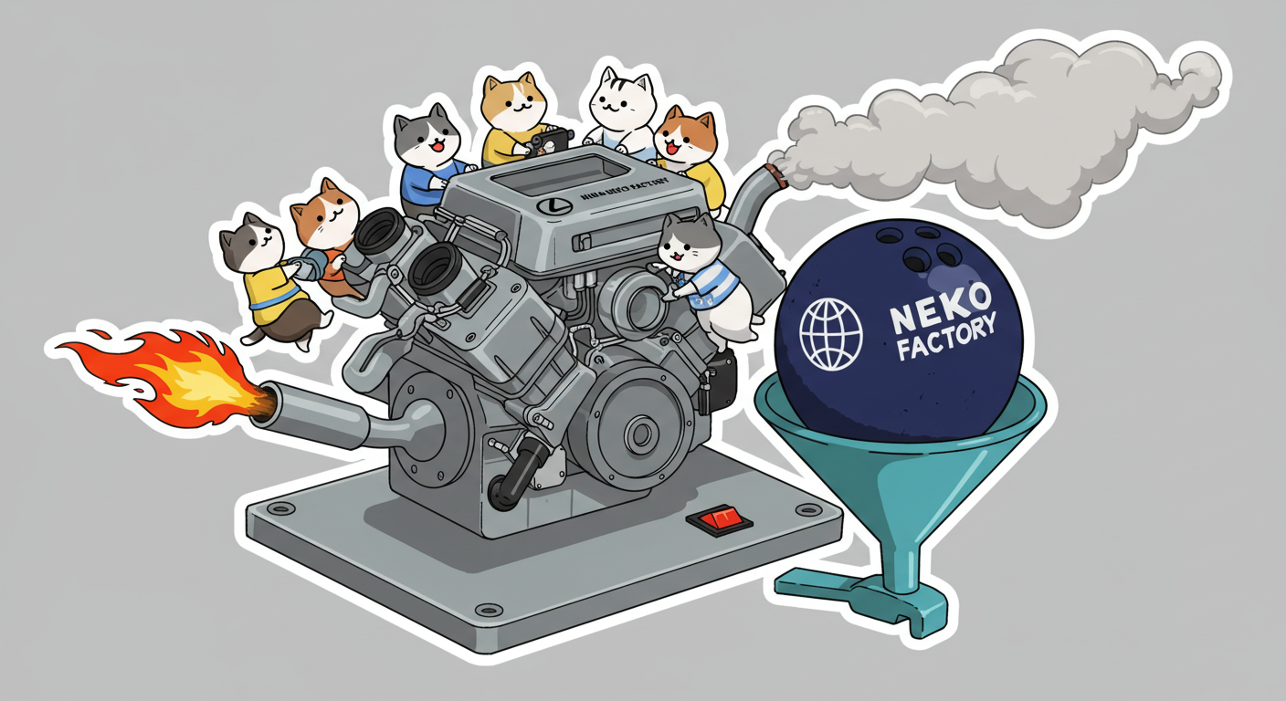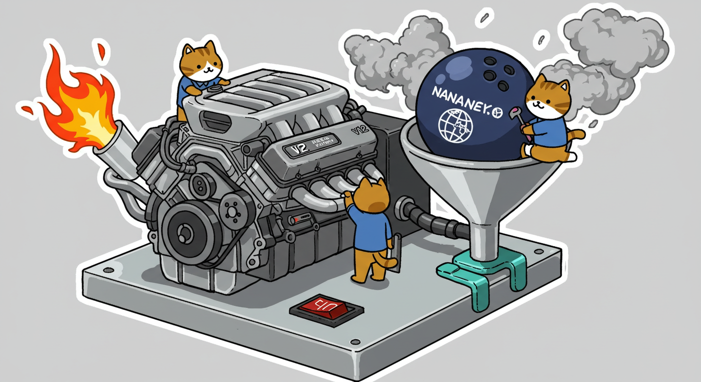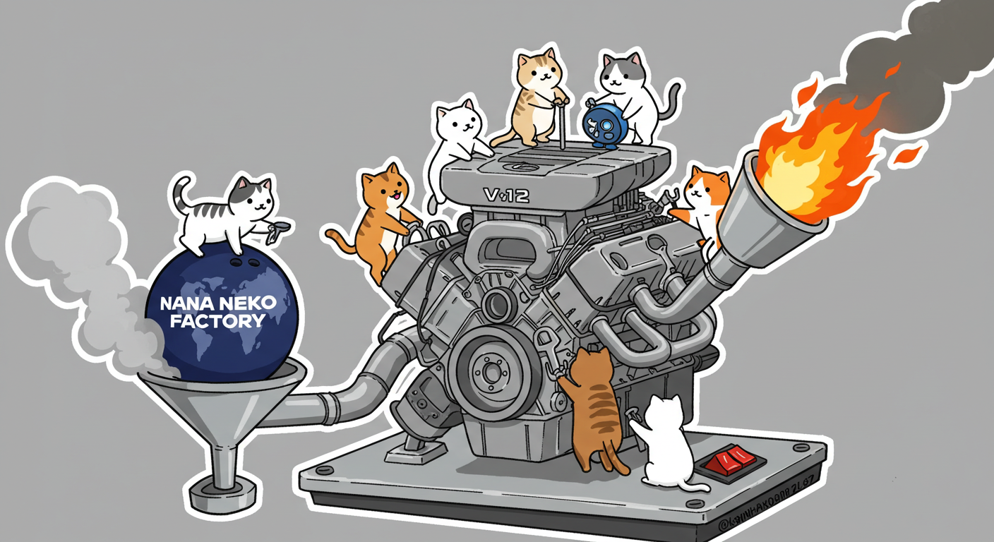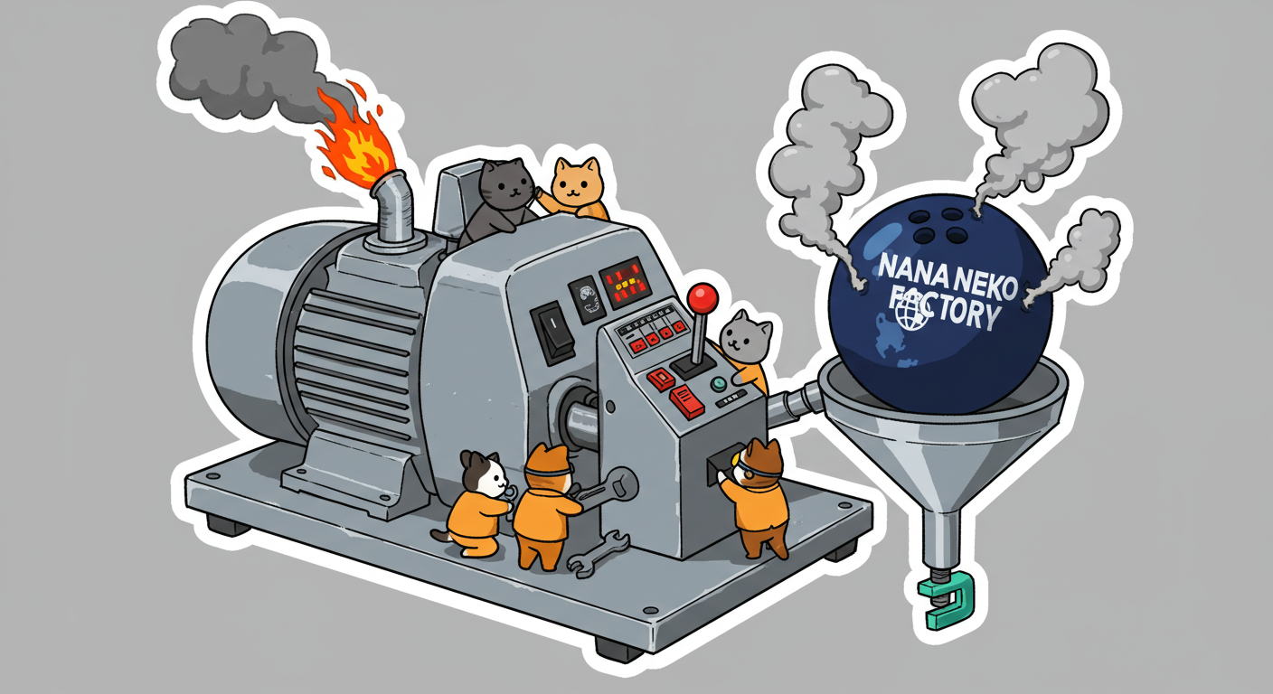現実逃避も兼ねて Googleの何かのAIの画像生成で あったらいいな~ってのって思うの作ってみました Whisk - labs.google/fx https://labs.google/fx/ja/tools/whisk 使い方などは下記のギガジンさんを見てください https://gigazine.net/news/20250213-google-whisk/ バンプーさまがボール研磨機2号機の導入を検討してるようで 刃物研ぎ機で製作しようかな~ でも弱そうだしな~ってことで パワフルな何か作れないかな~と思い 画像生成してみました ベースに使うのは下記の『ABSのスピナー』と『アメリカのスピナー』です よし作るぞ AIになんかかんや書いてお願いした 時々なんか違うのが出てくる カップの上にボールを乗せてほしいので 細かくAIさんに、アキュじゃないななねこだ、こーして、あーして、これはこう あーじゃない、こーだよと聞いてもらうこと1時間 なんでカプセルに入れる??? これは今話題のSTORMパワーエッジをカプセル化したもの なんとか良い感じのが出来た これをベースに AIにさらなるお願いを言いまくる 良いんだけど なんか弱そう もっとエンジン並みにパワフルにしてほしい 可能だったらターボも付けてくれ!! たのむ~~~ 気筒数船してV12にしてくれ~~~って言ったら 2気筒~~ 12って書いてるだけやんけ。。。おい!! わりと良い感じなんだけど もっと気筒数増やしてパワフルにしてほしい V12気筒エンジンにしてくれ~~~たのむ~~~ わりと良い感じなんだけど もっとパワフルにしてほしい V12気筒のレクサスエンジン たのむ~~~ すごく良い感じに伝わったようで まじレクサスのエンブレムが付いてる でもね まだ足りなんだよね パワフルさ なんていうかな~ 燃えてる感じ モクモクな感じ いいねいいね でも・・・軸大丈夫か?? いいねいいね 軸はしっかりしてるけどボール回るのか?? さっきより良いよ ボール燃えないか?? ボール燃えてるよね? 火が近いって 煙も追加して~って頼んだら・・・ついに炎上 ボールは燃やすなとお願いしたら 燃えてはないけど煙でてるよね・・・ で 軸大丈夫か?? 軸を太くしてとお願いした 何か足りない ネコを追加しよう ナナネコだからね って エンジン浮いてるし どこにマフラー付けてるねん そこ指穴ですけど・・・・ 7匹お願いします 良い感じだけど ボール燃えてるって だから燃やすなって 1匹増えてるし 今度は7匹 Cって何?? 軸大丈夫?? 軸替えたら良い感じだよ ねこ増えてるって 炎上中 6匹?? 良いぞ良いぞ 7匹だし ボールも燃えてない またねこ増えてる ボールもモクモクしてる あかんて ボール避難?? 良い感じだよ いいねいいね いいよいいよ マシになってきた ボール燃えてって 4匹どこ行った?? 脱走?? あと2匹どこや?? あと1匹 穴からモクモクやって また脱走か? よし帰ってきた 良いけど軸が浮いてるよ よし 軸固定完了 エンジンしょぼくなってない?? 良いよ 良いよ 良い感じ~ エンジンをモーターにかえてもらった 良い感じだよ みんなで研磨って感じだね 8匹なってるって あ~ 楽しかった おしまい 〆ボール研磨機 |