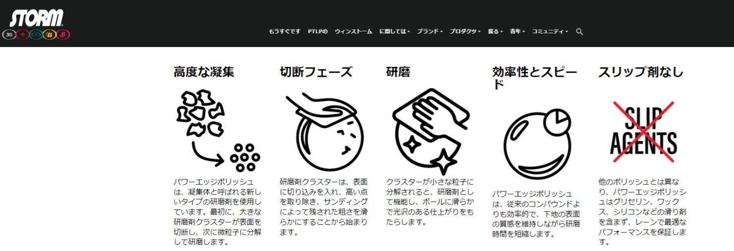 【ストーム パワーエッジ】 https://www.stormbowling.com/power-edge 大関さんの動画です 以下画像はストーム社から引用してます 海外の説明を見ると リアクタグロスは 一貫性を保つために 硬く 小さな 研磨剤を使っていたから 高い仕上がりにするために時間を使ってたと そして濃度も低かった パワーエッジは 凝集体と呼ばれる新しい種類の研磨剤を使用して ブドウの房みたいな構造で クラスター(ブドウの粒ですね)が分裂する過程で カバーストックの表面のRa値の高い部分を研磨し さらに研磨剤が小さく砕かれ 滑らかに研磨すると この研磨剤は 凝集型なので 迅速に小さな研磨剤に分解されるので 研磨効果がより早く発生して 光沢が出る時間が早いです~~ Raの山を立てたまま 光沢が出ますとのこと らしい・・・ 追記 2025.05.01 ハイスポーツ社 パワーエッジ https://hi-sp.co.jp/product/power_edge/ 〆 |