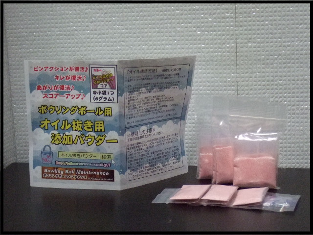 車移動の際、ボウリングバックの中に『オイル抜き用添加パウダー小袋入り』が