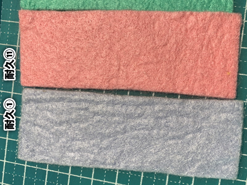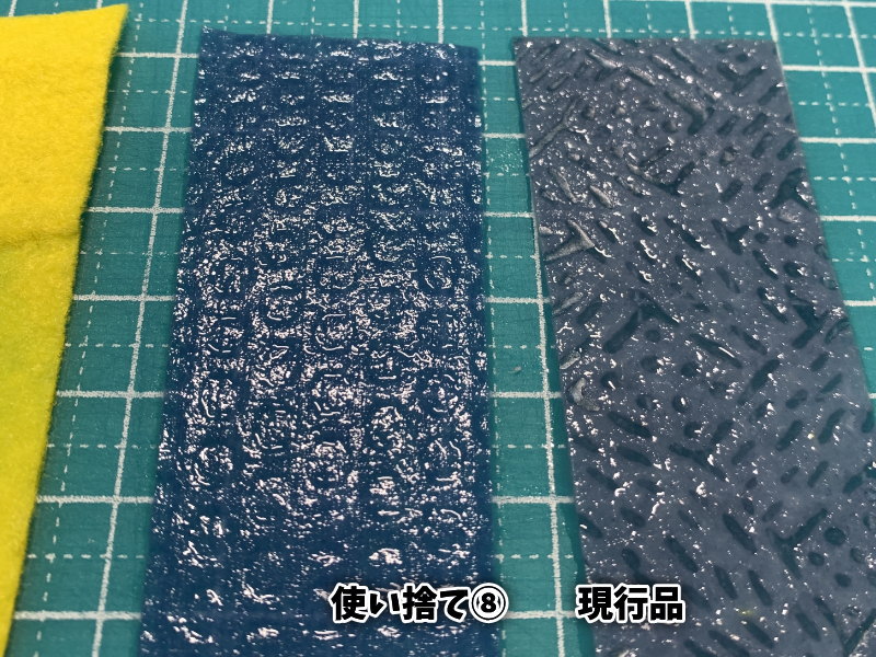 選考用に 下記の6種類で調査したいと思います 現行品(現行品) クレシア キムタオルタオルブルー 耐久性のあるものの考察①(耐久①) 下記は、2012年にオイルカット君をリリースした時に この吸水マイクロファイバーにオイルカット君を スプレーしてボール拭き拭きしてね~ってセット販売してた物です 厚みは約3ミリでフェルトみたいな感じの見た目です 耐久性のあるものの考察④(耐久④) 多機能ファイバークロス 素材は、ビスコース (光沢のあるレーヨン素材) 厚み 約1.2ミリ 耐久性のあるものの考察⑪(耐久⑪) 吸水クロス 1P 素材 レーヨン、ポリエステル 厚みは、約2.5ミリ 耐久①とよく似た感じに見えます 厚みは、若干レッドの方が薄い感じ 使い捨てのもの考察⑧(使い捨て⑧) セラーズ SELLARS 工業用ワイプ TOOLBOX T700 耐溶剤で特厚 ブルー 素材 ポリプロピレン繊維とセルロース 厚み 約0.7ミリ すべて良いサイズカットします (100ミリ × 100ミリ 程度でカット) それをさらにカットして並べます 30ミリ × 85ミリ くらい 吸水試験を行います 用意したもの 計量スプーン 2cc 可塑剤ちゃうねん 20cc 計量スプーンに、可塑剤ちゃうねん を 2cc入れます 順番に、2ccずつ 染み込ませます 染み込ませた状態 良い感じに染み込んでいます いいね イイね 良いよ~ 下があまり濡れてないので シートに、吸われてる感じですね これは、吸いすぎてダメですね・・・ 2ccでは、全く足りない感じです 続きまして 洗濯試験 お水の中で 3分くらい もみもみ ぎゅ~っと絞ります 並べて乾燥させます~ 実用範囲の乾燥にかかった時間 室温22℃ 湿度63% 現行品 クレシア キムタオルタオルブルー 2時間程度 使い捨て⑧ セラーズ SELLARS 工業用ワイプ 2時間程度 耐久④ 多機能ファイバークロス 8時間程度 耐久⑪ 吸水クロス 1P 12時間程度 耐久① 吸水マイクロファイバー 12時間程度 カッターマットに並べて乾燥ではなく 空中に、ぶら下げて干すと もう少し早くなると思います。 24時間乾燥後 乾燥後は 伸縮することなく元の厚みまで戻ってます 現行品 クレシア キムタオルタオルブルー 使い捨て⑧ セラーズ SELLARS 工業用ワイプ 耐久④ 多機能ファイバークロス 耐久⑪ 吸水クロス 1P 耐久① 吸水マイクロファイバー まとめ ちゃうねんのリリース時から思ってる事ですが 小さく薄いと塗りにくいけど 吸水がちょうどいい 分厚いく大きいと塗りやすいが ちゃうねんの吸水が多いから、2ccでは足りない これって トレードオフの関係だと思うんだよね 小さいのも ペラペラなのも、 シートに必要以上に吸水されると ボールに塗布できないからであり 使いやすさを求めるならば 分厚く、吸水の多い、 吸水マイクロファイバーが良いね 可塑剤注入が趣味・大好き・仕事だという人は ヨコヨコ容器 ペン型容器など を 購入して頂くことが良いと思う ↓ ↓ ↓ https://ballmaintenance.no-mania.com/Entry/186/ 通常のユーザーさんには、 セラーズ SELLARS 工業用ワイプ TOOLBOX T700 耐溶剤で特厚 ブルーを フリーサイズで採用したいと思います。 詳細が決まりましたら 追記します ○┓ 順次 HP、ショップのページなどの 準備が出来ましたら切り替えさせて頂きます 〆可塑剤ちゃうねん 塗布用シート考察 |