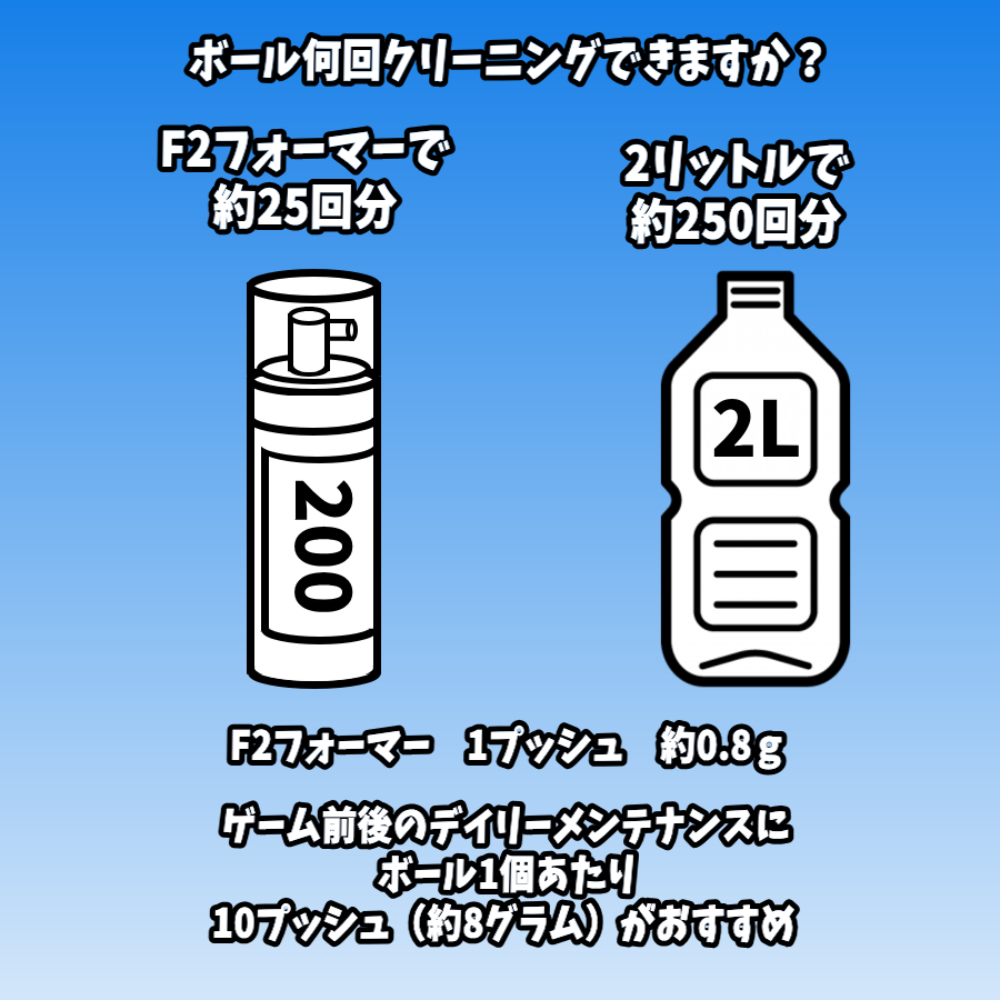おすすめしてる泡になる容器『F2フォーマー』について 2011年~2014年までは下記ダイソーで販売してた 海外製のフォーマー容器を販促につかっておりましたが 数回詰め替えを行うとプッシュが難くなり 耐久性が良くなくあまり良くなく 2014年の秋から現行の国産のF2フォーマーに切り替えました 2014年秋よりオプションで+200円でグレードアップ可能にさせて頂きました 国産 F2フォーマー 大和製罐ノンガス泡フォーマーテクノロジー https://www.daiwa-can.co.jp/technology/easy_01.html 大和製罐 フォーマー容器の概要及び最新技術について https://kangiken.net/seihin/seihin-pdf/6011_seihin.pdf 現行品です 切り替えから10年以上採用してますが 不具合などもほぼなく耐久性もすごく良くて 落としたりぶつけたりしない限りは壊れなく 値段はそこそこしますがお値段以上だと僕は思います 使って頂ければ海外製との違いがわかると思います 【国産】泡になるスプレー容器 PET F2フォーマー 容量【200ミリリットル】 1プッシュの吐出量 約0.8g 【特徴】 ◎フォーマーの耐久性が良い ◎フォーマーのプッシュが軽い ◎泡が極細 ◎容器の厚みが均一で丈夫 ゲーム前後のデイリーメンテナンスに ボール1あたり 10プッシュ(約8グラム)をおすすめしてます F2フォーマーは200㏄容器ですので 満タンで約25回クリーニングできる計算となり 2リットルですと約250回分です 激細泡 げきさいあわ 活性クリーナー kc10.xx 25JKM 泡 あわ 活性クリーナー kc9.0x 激泡泡 げきあわあわ 激泡泡アルコール系クリーナー AAA2.5x 〆トリガースプレー容器はまた今度書きます○┓ |