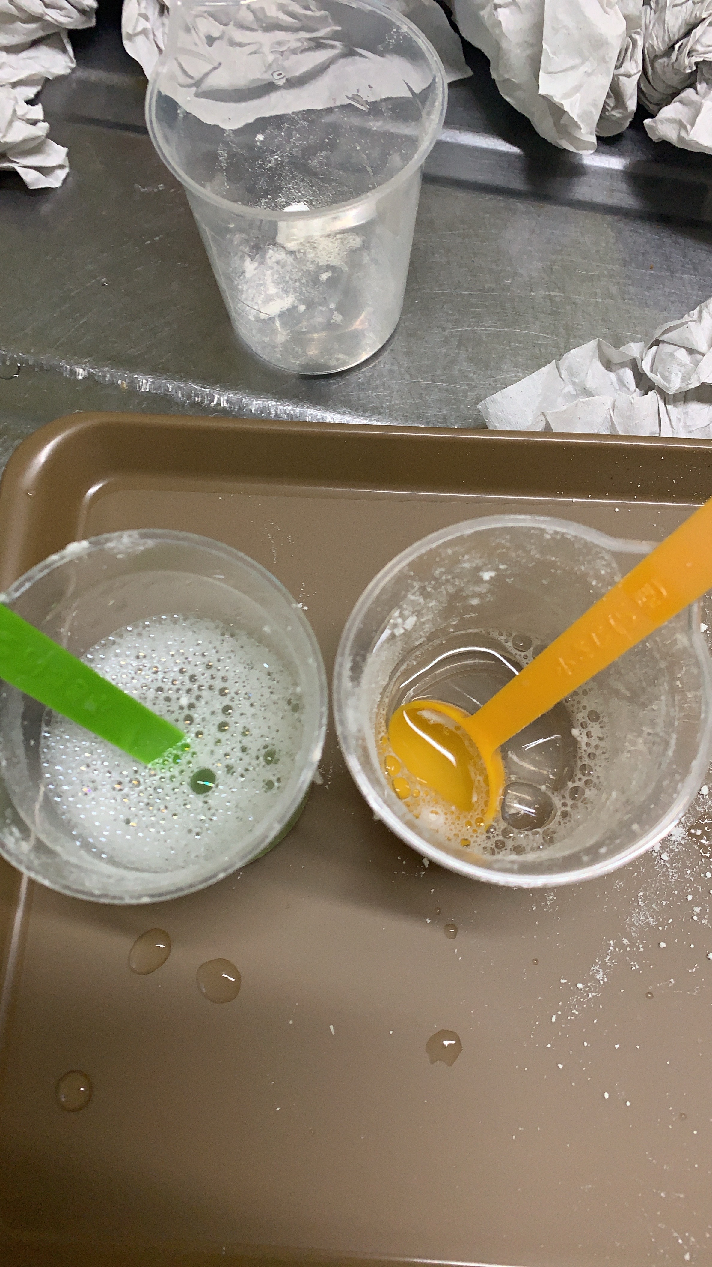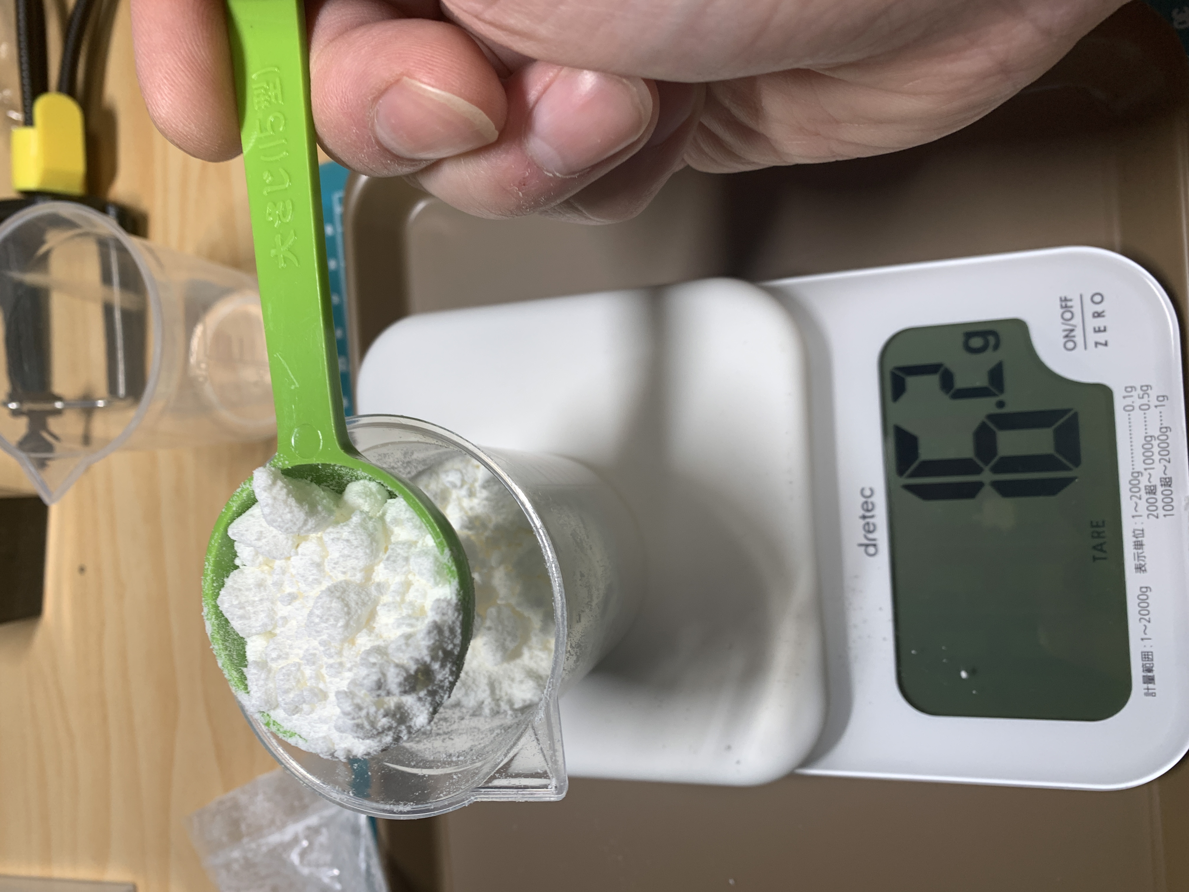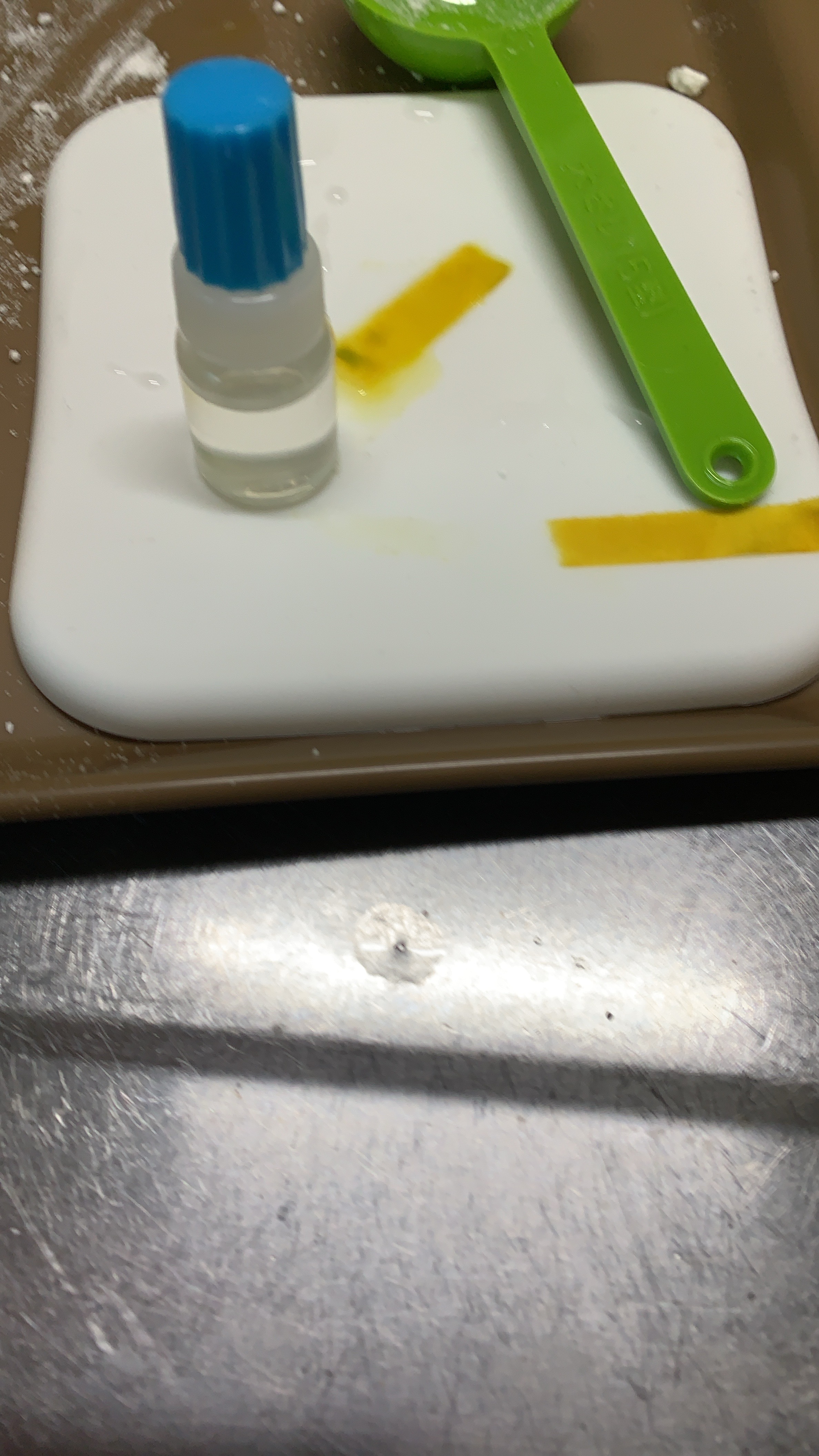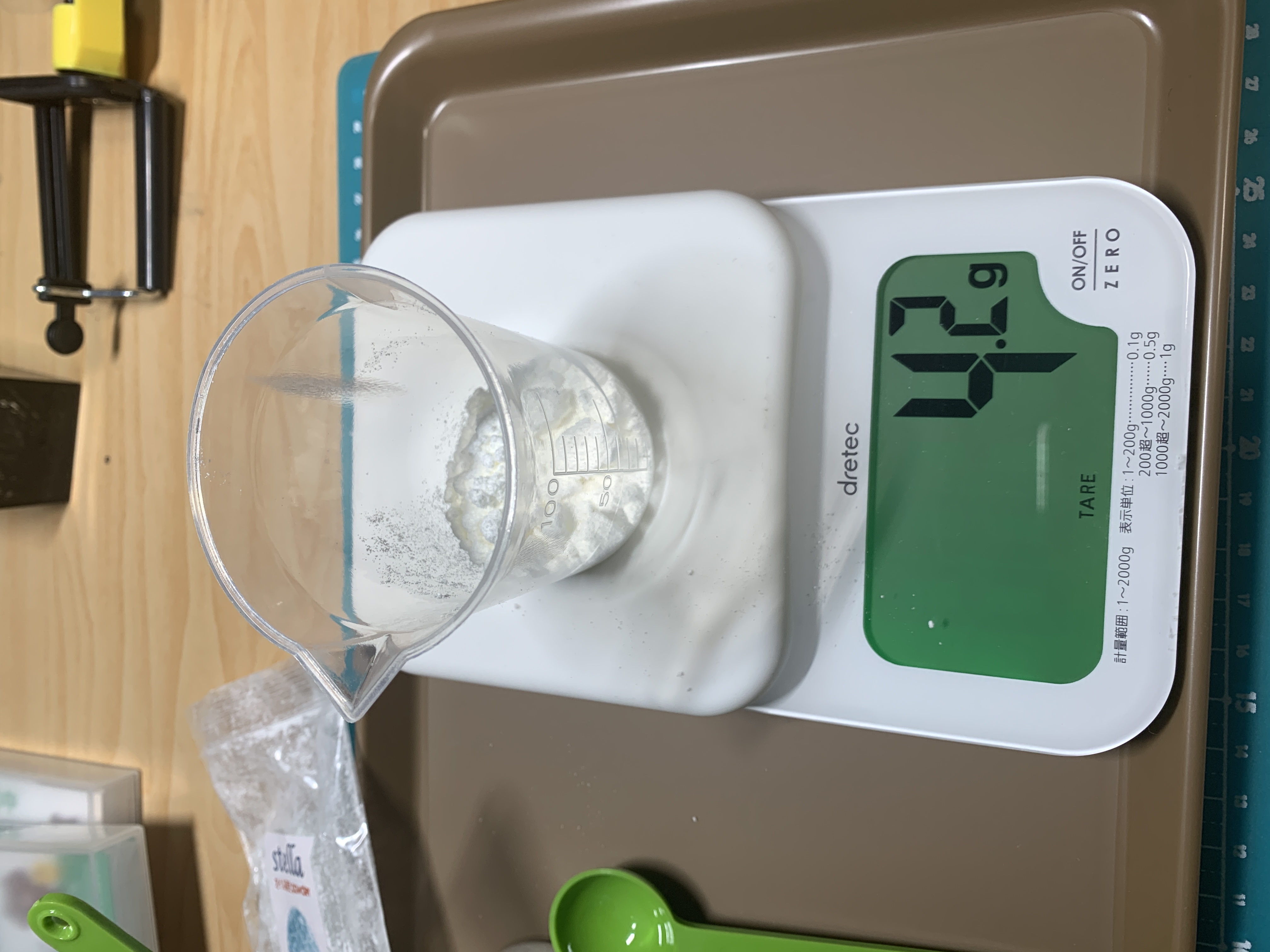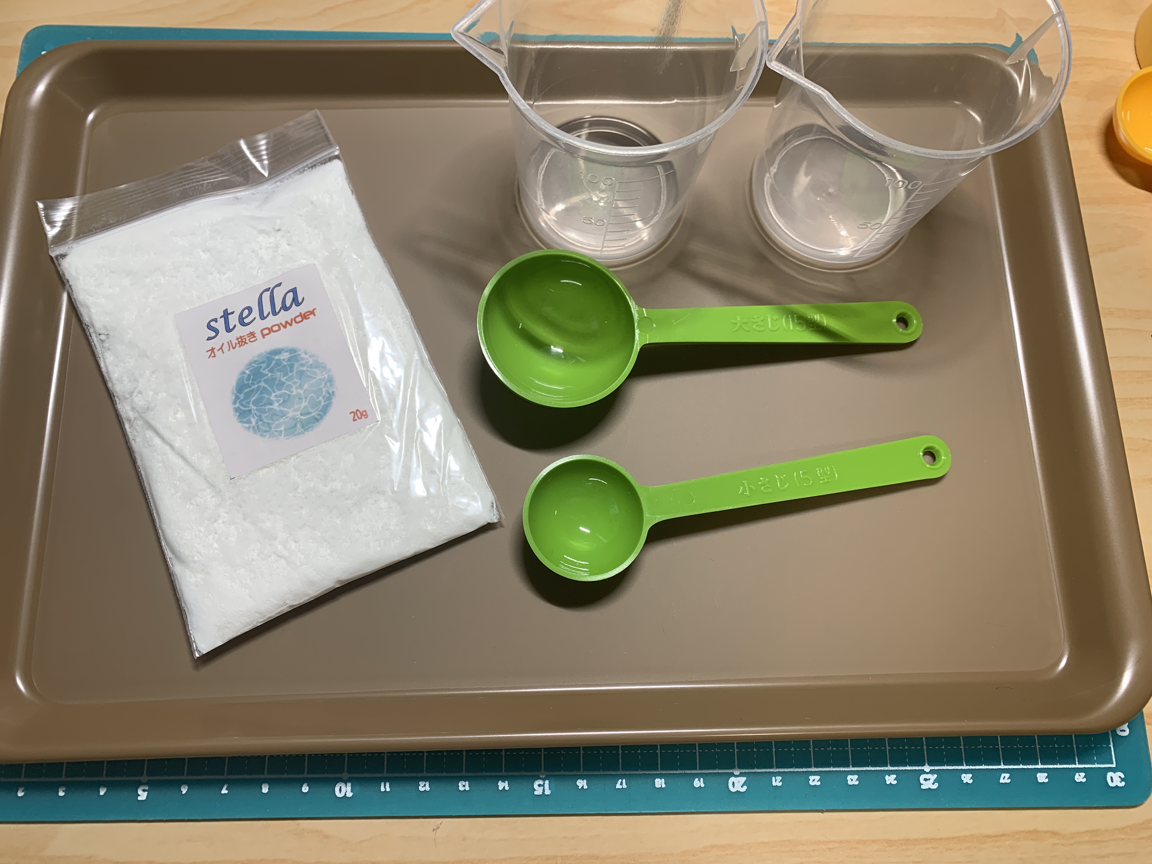 https://ballmaintenance.no-mania.com/Entry/229/ その後、しばらくして Tさまが、送ってくださいました♪ 頂いてから、少し時間が経ちましが 本日、簡単に調査いたしました まずは用意したもの 計量カップ 2個 (風袋用に別途1個) 計量スプーン 大さじ 計量スプーン 小さじ 印象は、大きさの割に軽い 20g 1400円 POPはついてこないみたいなんで画像だけ まずは重さから測ってみます 23.1グラム 袋あるんでそんなもんでしょ 計量カップに出してみた 20.7グラム キッチリ入ってますね 説明書の通り 大さじ1杯(すりきり)取って もう1個の計量カップに入れてみる 4.2gです 説明書では、2グラムとなってるので 大さじだと多すぎますね 小さじでやってみよう すりきり1杯だと 1.6グラム 小さじ大盛り1杯ならば 2.7グラム 結果として 小さじに中盛りくらいが丁度良いかもですね 水分量が多いのか わりと べたつく感じで スプーンにへばりつく 次は、溶解テスト 左 お湯40度を入れた攪拌したもの 右 水を入れて攪拌したもの 水だと ちょっと溶けにくい感じを受けました 泡立ちも良くない リトマス試験紙でのテスト ほぼ中性 粉の付いた指で触ったとこだけ若干青い 粉は若干アルカリ性なんでしょうね オイルを用意しました 10滴入れて攪拌します 左 お湯に溶かしたもの オイルなし 右 お湯に溶かしたものに、オイルを10滴 よく攪拌すると 白濁して泡が消えてゆき 泡立って行かなくなります 以上のことから 界面活性剤がメインの粉せっけんみたいな感じを受けました オイルも乳化できてるし それなりの効果はあると思います 水で良いと書いてますが お湯の方が良い結果になると思いますので お湯推奨です Tさん 提供ありがとうございました 〆 |