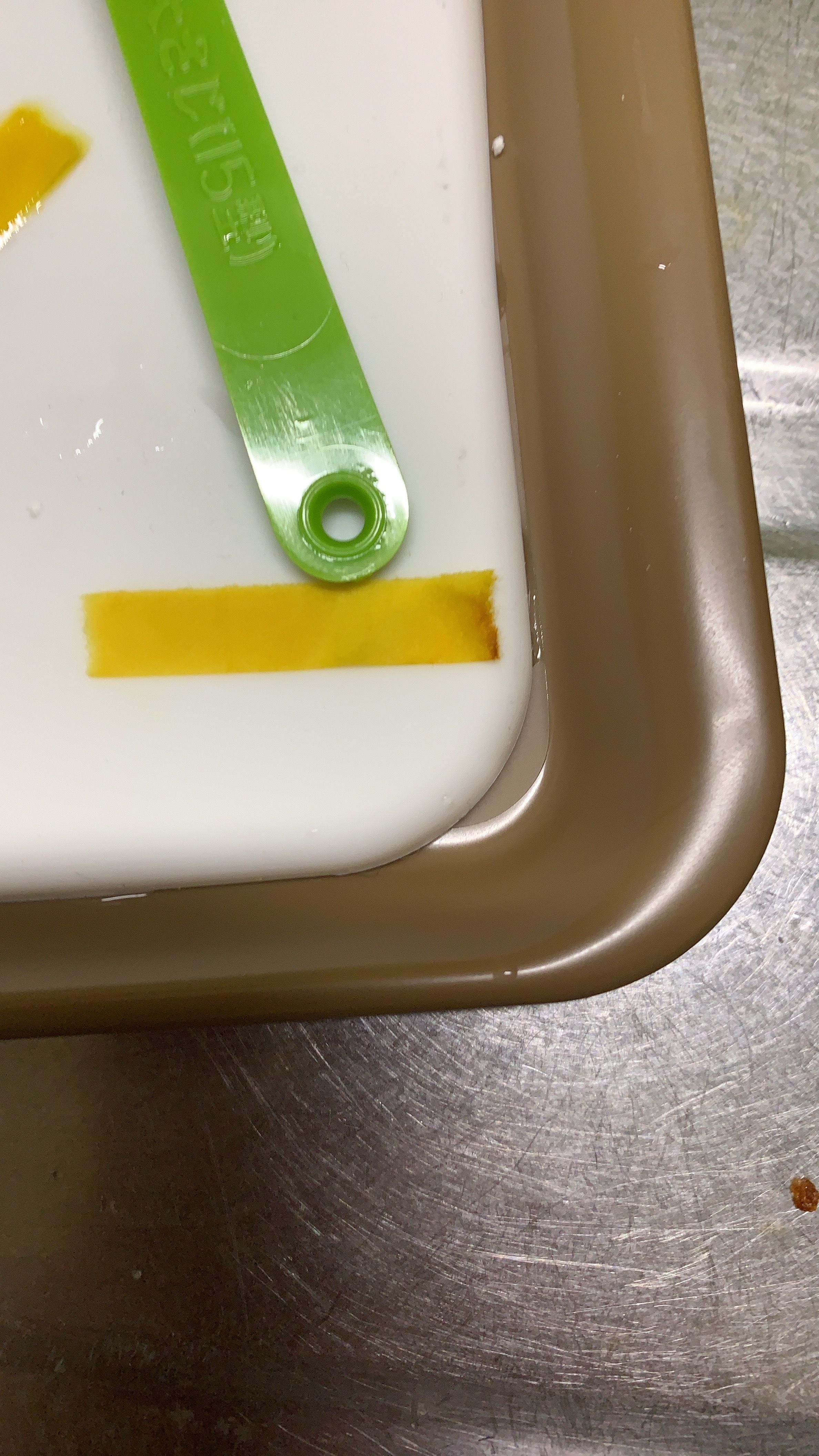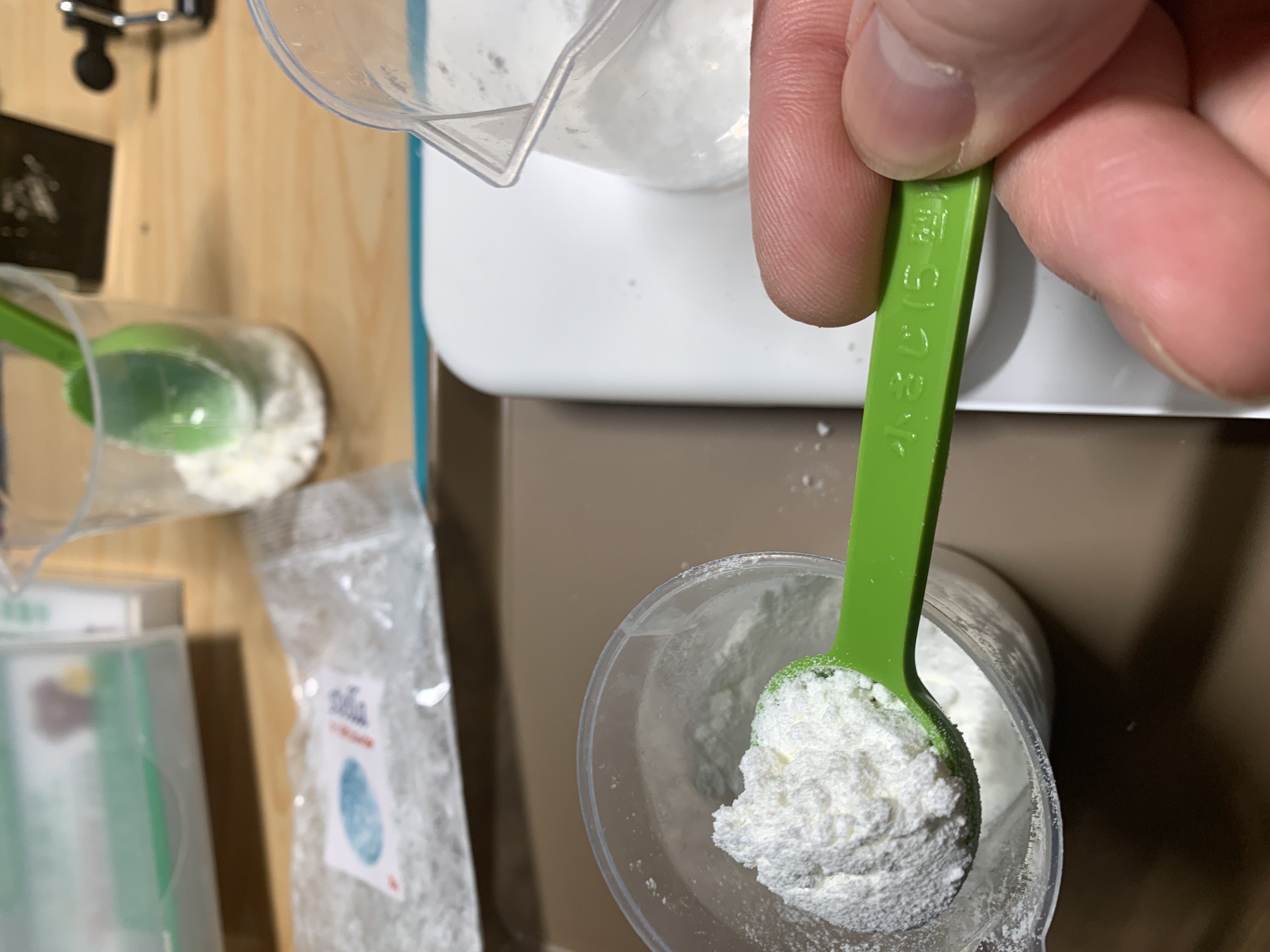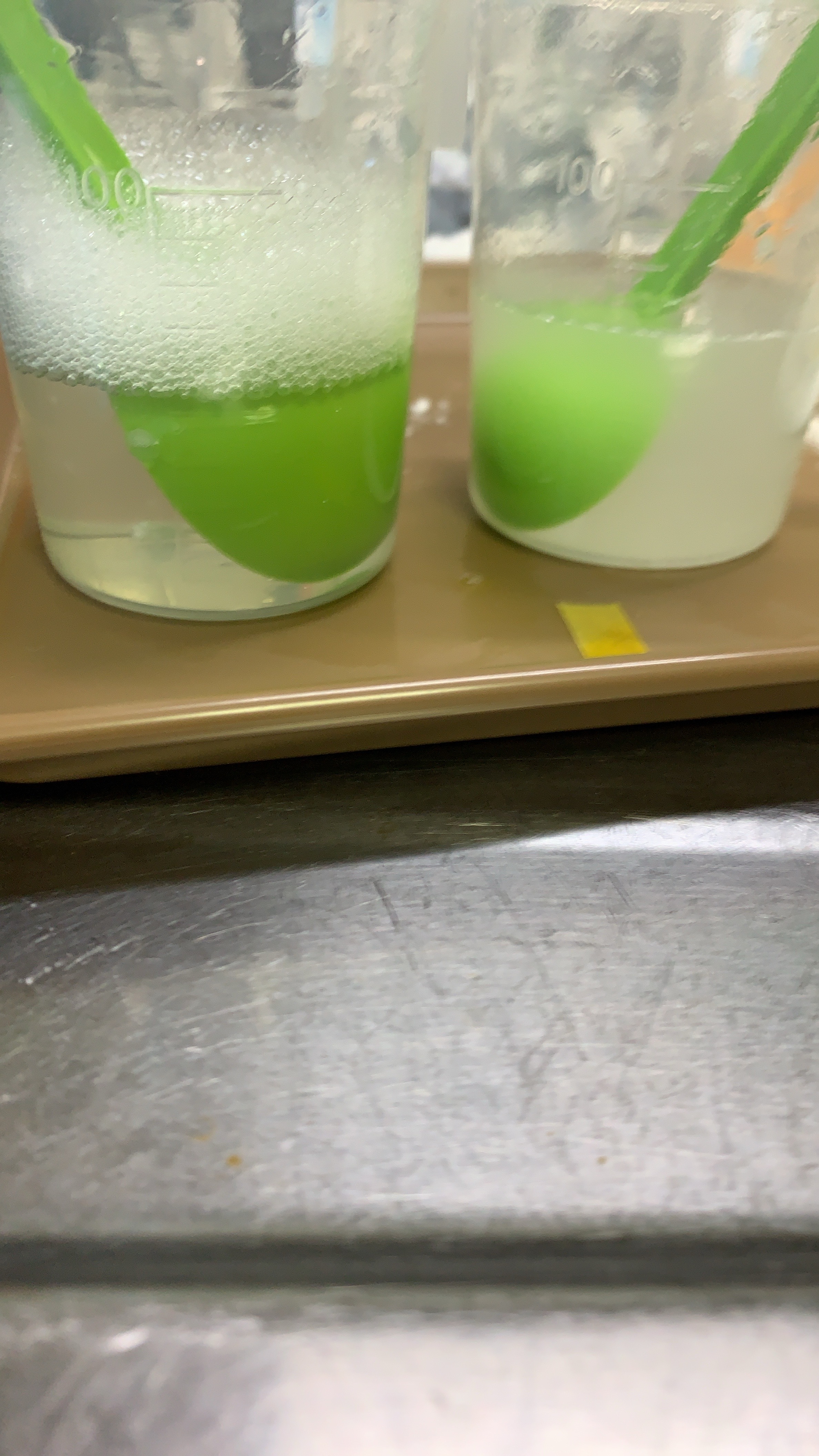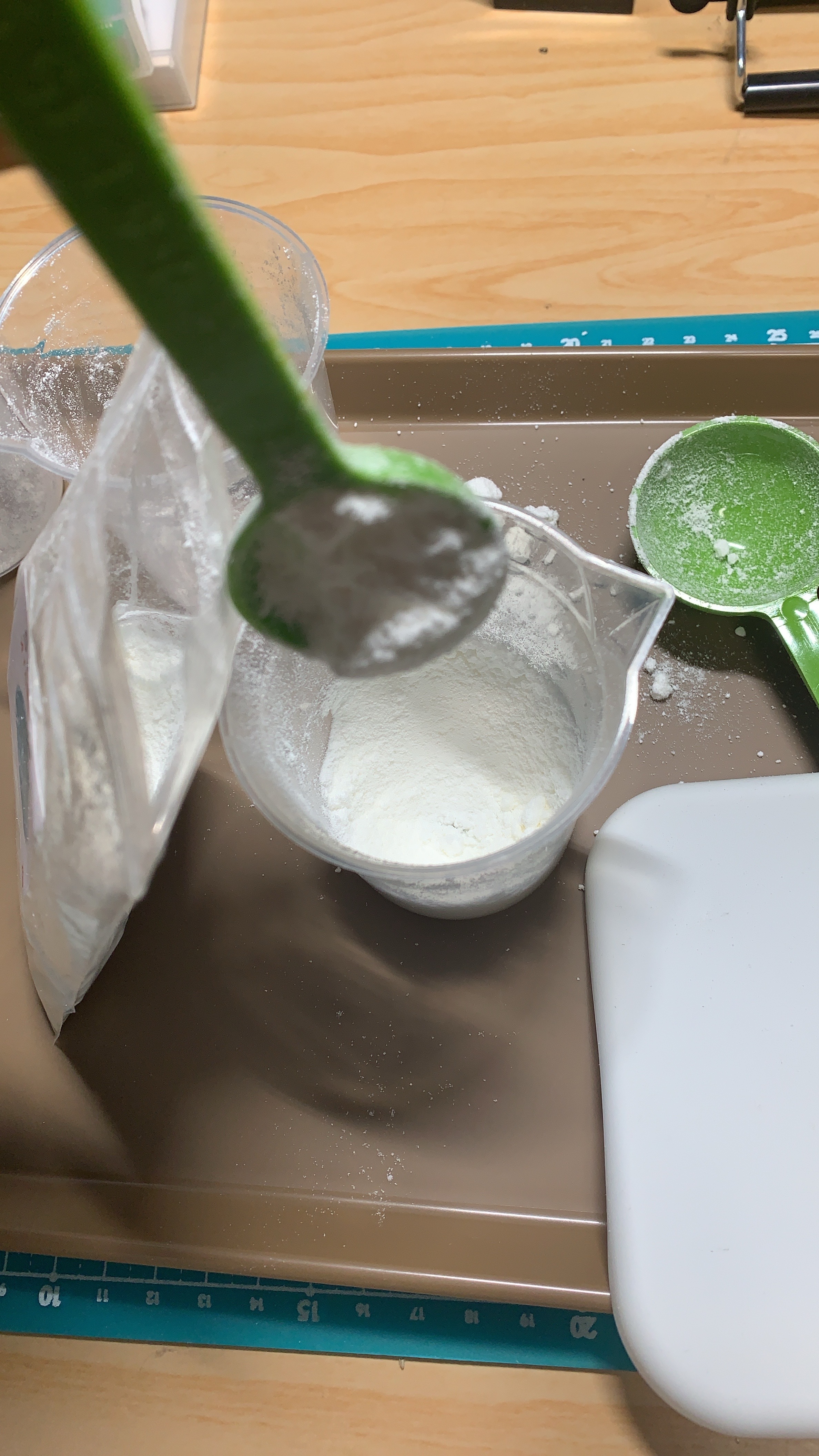 https://ballmaintenance.no-mania.com/Entry/229/ その後、しばらくして Tさまが、送ってくださいました♪ 頂いてから、少し時間が経ちましが 本日、簡単に調査いたしました まずは用意したもの 計量カップ 2個 (風袋用に別途1個) 計量スプーン 大さじ 計量スプーン 小さじ 印象は、大きさの割に軽い 20g 1400円 POPはついてこないみたいなんで画像だけ まずは重さから測ってみます 23.1グラム 袋あるんでそんなもんでしょ 計量カップに出してみた 20.7グラム キッチリ入ってますね 説明書の通り 大さじ1杯(すりきり)取って もう1個の計量カップに入れてみる 4.2gです 説明書では、2グラムとなってるので 大さじだと多すぎますね 小さじでやってみよう すりきり1杯だと 1.6グラム 小さじ大盛り1杯ならば 2.7グラム 結果として 小さじに中盛りくらいが丁度良いかもですね 水分量が多いのか わりと べたつく感じで スプーンにへばりつく 次は、溶解テスト 左 お湯40度を入れた攪拌したもの 右 水を入れて攪拌したもの 水だと ちょっと溶けにくい感じを受けました 泡立ちも良くない リトマス試験紙でのテスト ほぼ中性 粉の付いた指で触ったとこだけ若干青い 粉は若干アルカリ性なんでしょうね オイルを用意しました 10滴入れて攪拌します 左 お湯に溶かしたもの オイルなし 右 お湯に溶かしたものに、オイルを10滴 よく攪拌すると 白濁して泡が消えてゆき 泡立って行かなくなります 以上のことから 界面活性剤がメインの粉せっけんみたいな感じを受けました オイルも乳化できてるし それなりの効果はあると思います 水で良いと書いてますが お湯の方が良い結果になると思いますので お湯推奨です Tさん 提供ありがとうございました 〆 |