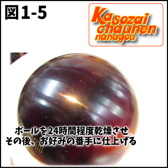 ボールに水気が塗れなくなる程度まで ボール全体にまんべんなく塗り込む ⑥ボールを24時間程度乾燥させる