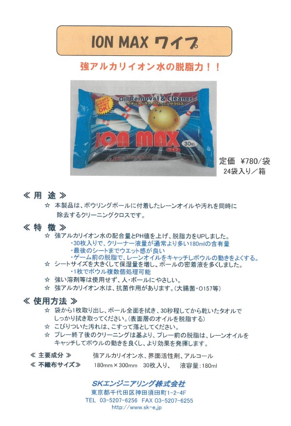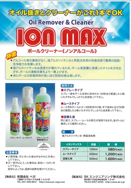 ABS販売のイオンパワーSジェルパック(仮名)というクリーナーが 載っていました 今後リリース予定の商品みたいですね 簡単に説明すると4回分+ボールベースが入って 上代1200円予定みたいです ジェル化された薬剤を含ませたボール用パックを ダブルでボールに被せて15分待ち仕上げに浮き出たオイルと汚れを クリーナーで拭きとるイメージです (製造フェムテック 販売ABS) 新情報が入ったらまたアップしたいと思います 次に、春くらいから風の便りで聞こえてきたクリーナーです イオンマックス ION MAX (オイルリムーバー&クリーナー) (製造SKエンジニアリング 販売ベガ) SKエンジニアリングさんは フェムテックさんの元々の販売を担当していた会社です 下の画像は、2012年のボウリングマガジンの特集のSSです ついに情報が出てきてカタログもアップされておりました 公式ページ ↓ ↓ ↓ http://www.sk-e.jp/products/bowling/ カタログ ↓ ↓ ↓ リンク切れしてるので アーカイブより ワイプ http://www.sk-e.jp/wp-content/uploads/2019/06/1906_ION_MAX_catalog.pdf プロショップベガのオンライン通販ショップでは、 まだ商品が登録されていない 近日発売予定なのかな? カタログ自体の製作日は2019年6月24日となってる USBCの表示もあるし? 企画自体はもっと前から出てるはずだから 風の便りで聞いた時期がそうなんだろうな~ もう少し様子を見ようかな~ カタログ見れただけでも十分だね ノンアルコールと記載されてるから ABS販売のイオンパワーとは、 中身が違うと思われます 強アルカリ電解水と界面活性剤となっております よし、何か試作品を作ってみるかな? nana neko FACTORY |